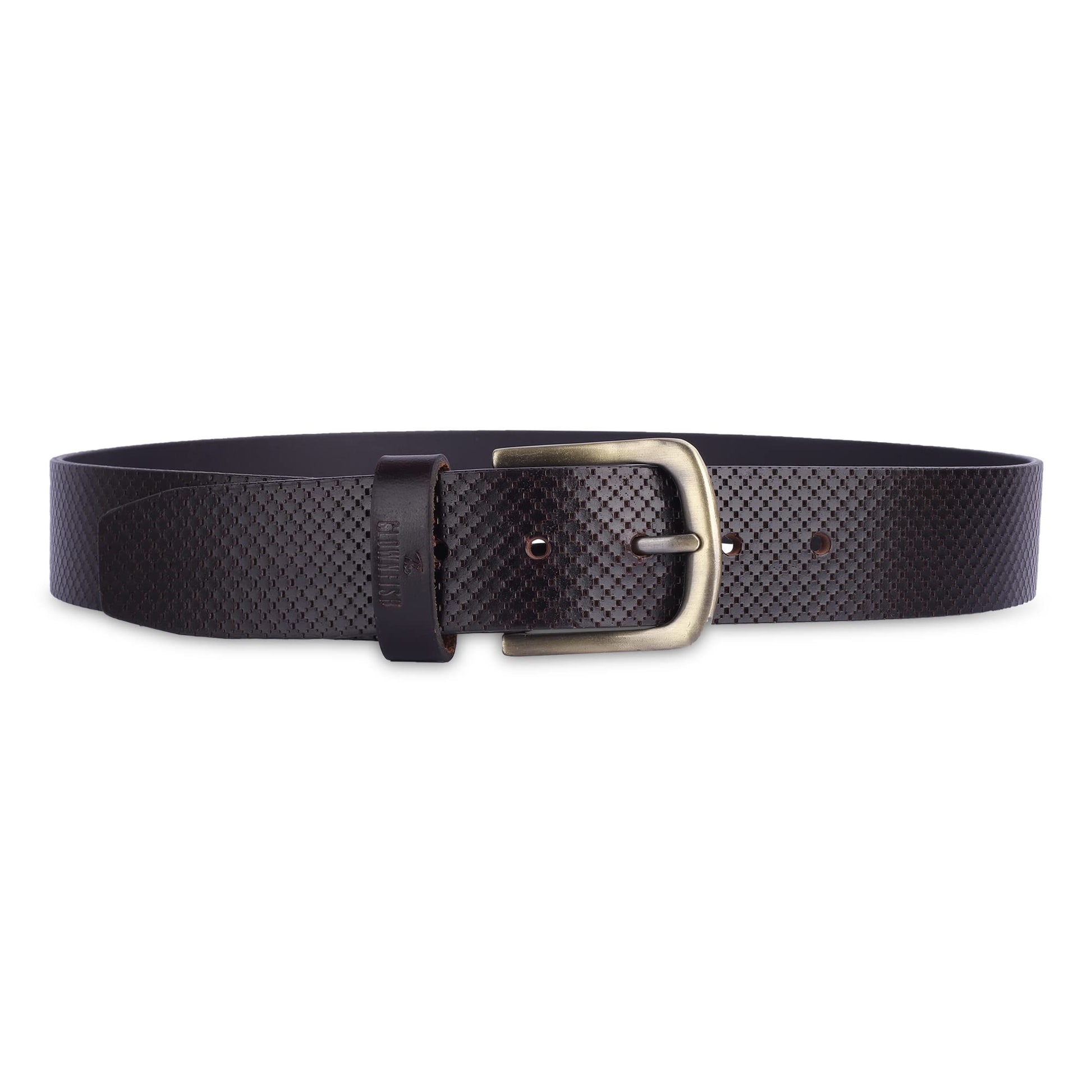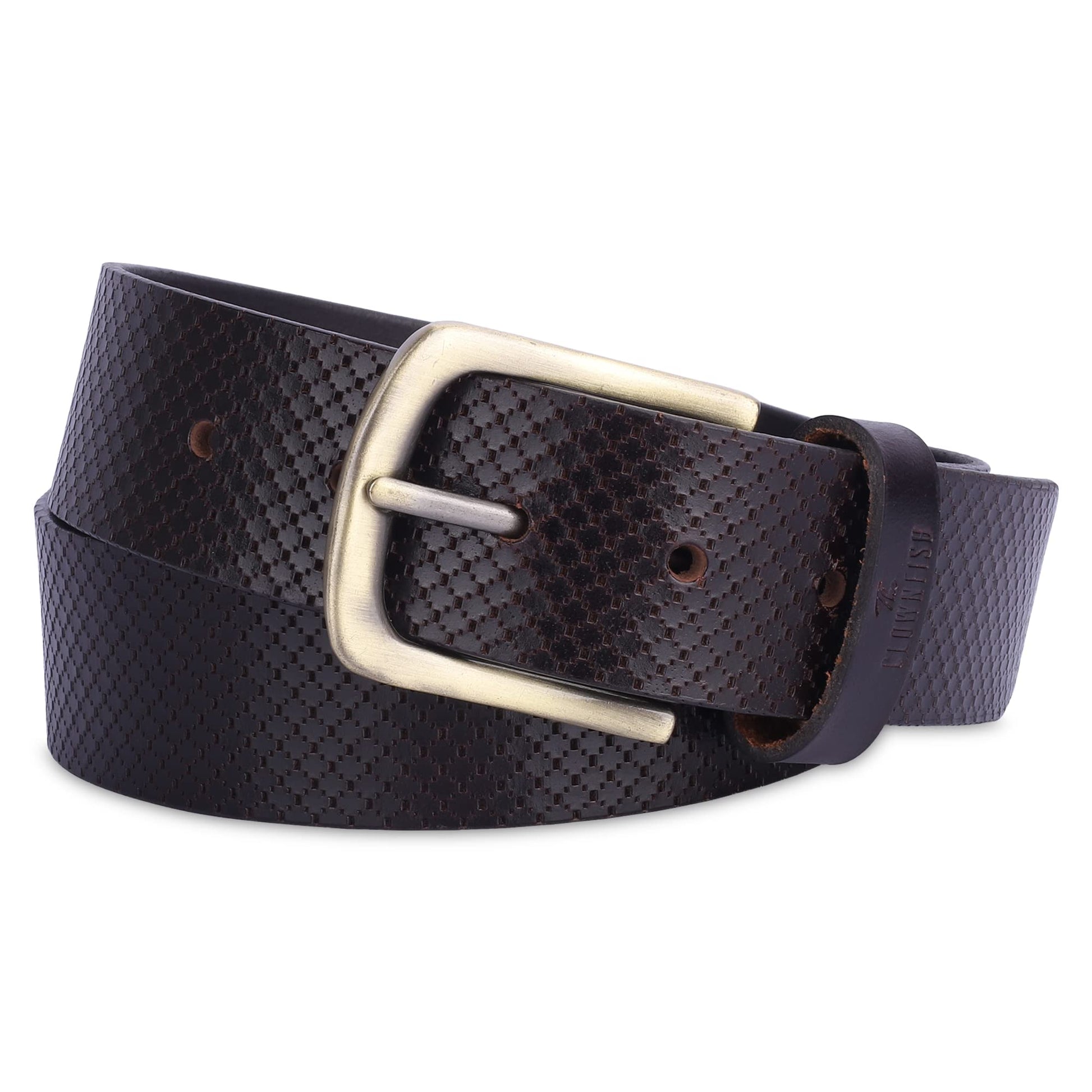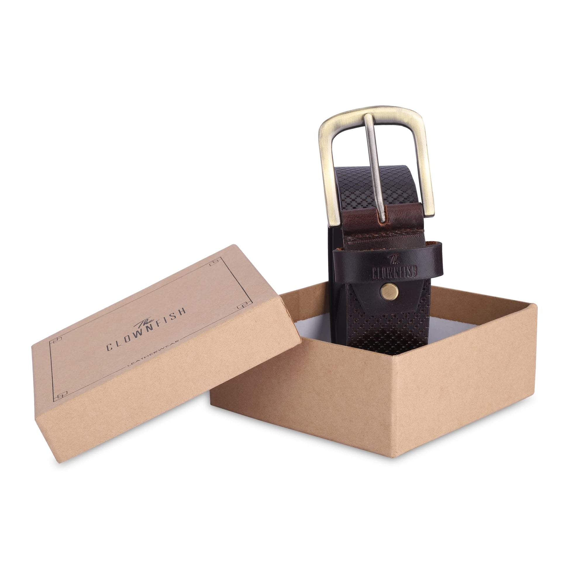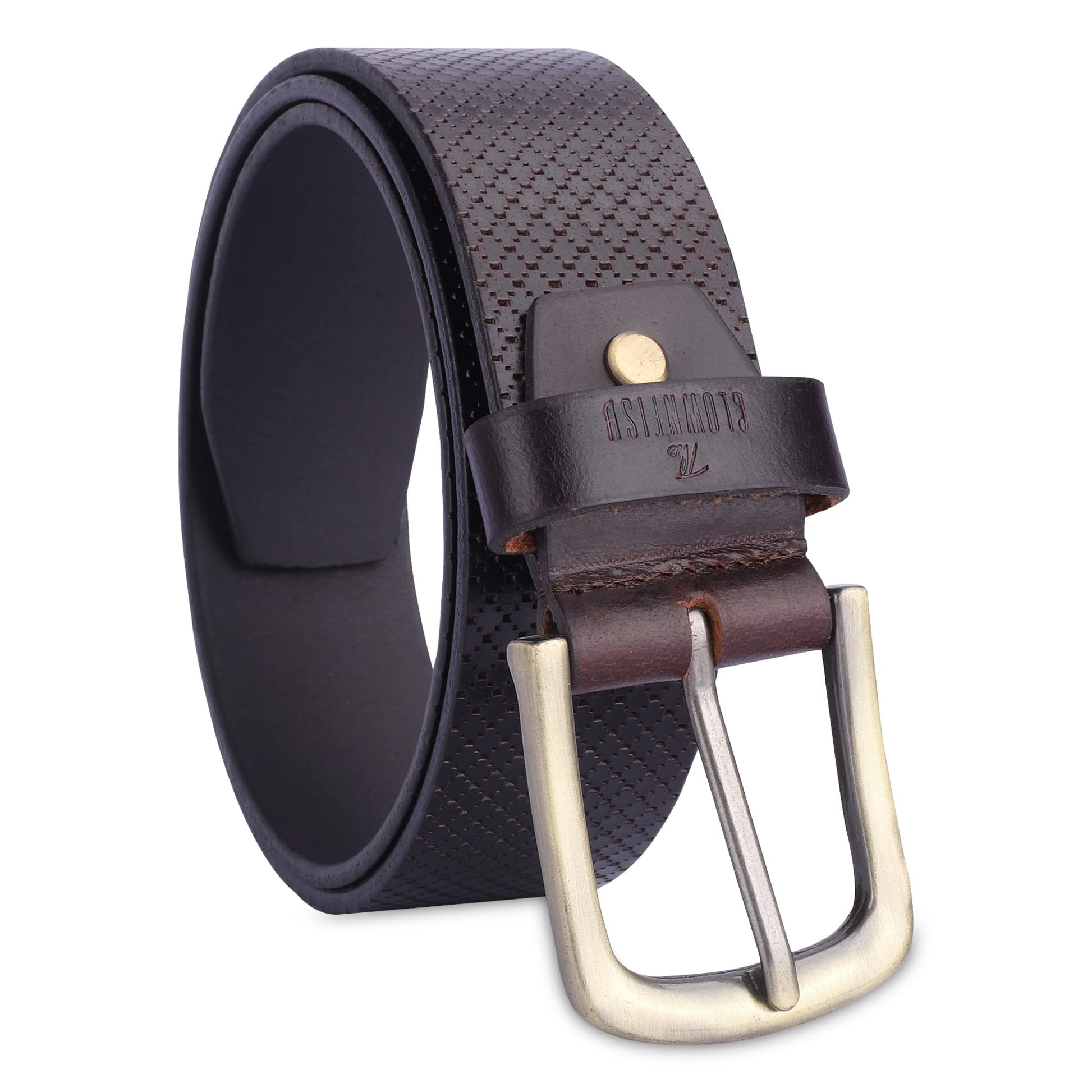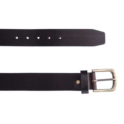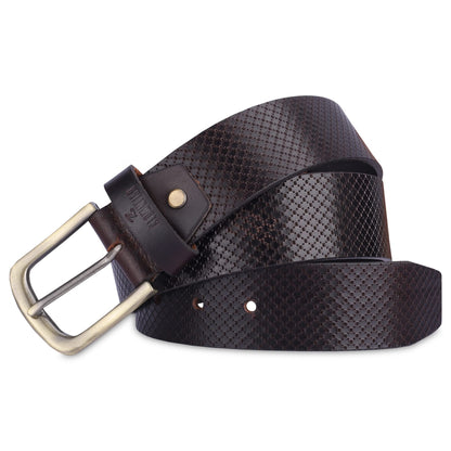 THE CLOWNFISH Men's Genuine Leather Belt with Embossed Design - Dark Chocolate (Size - 36 inches)