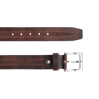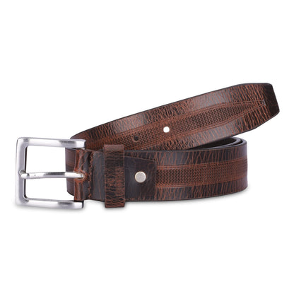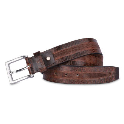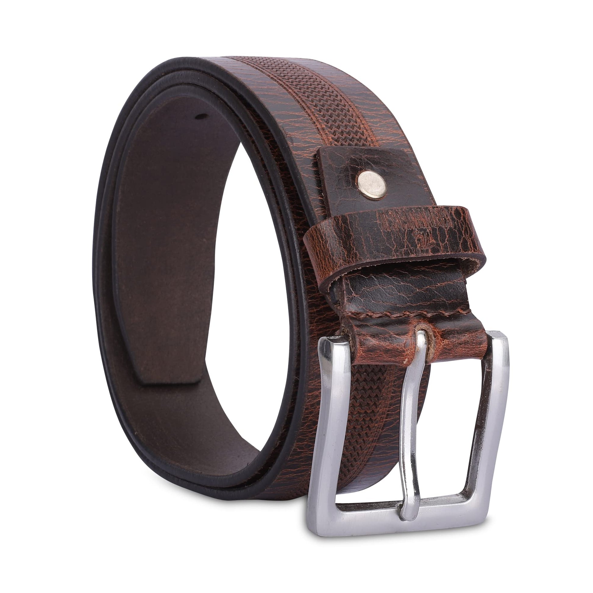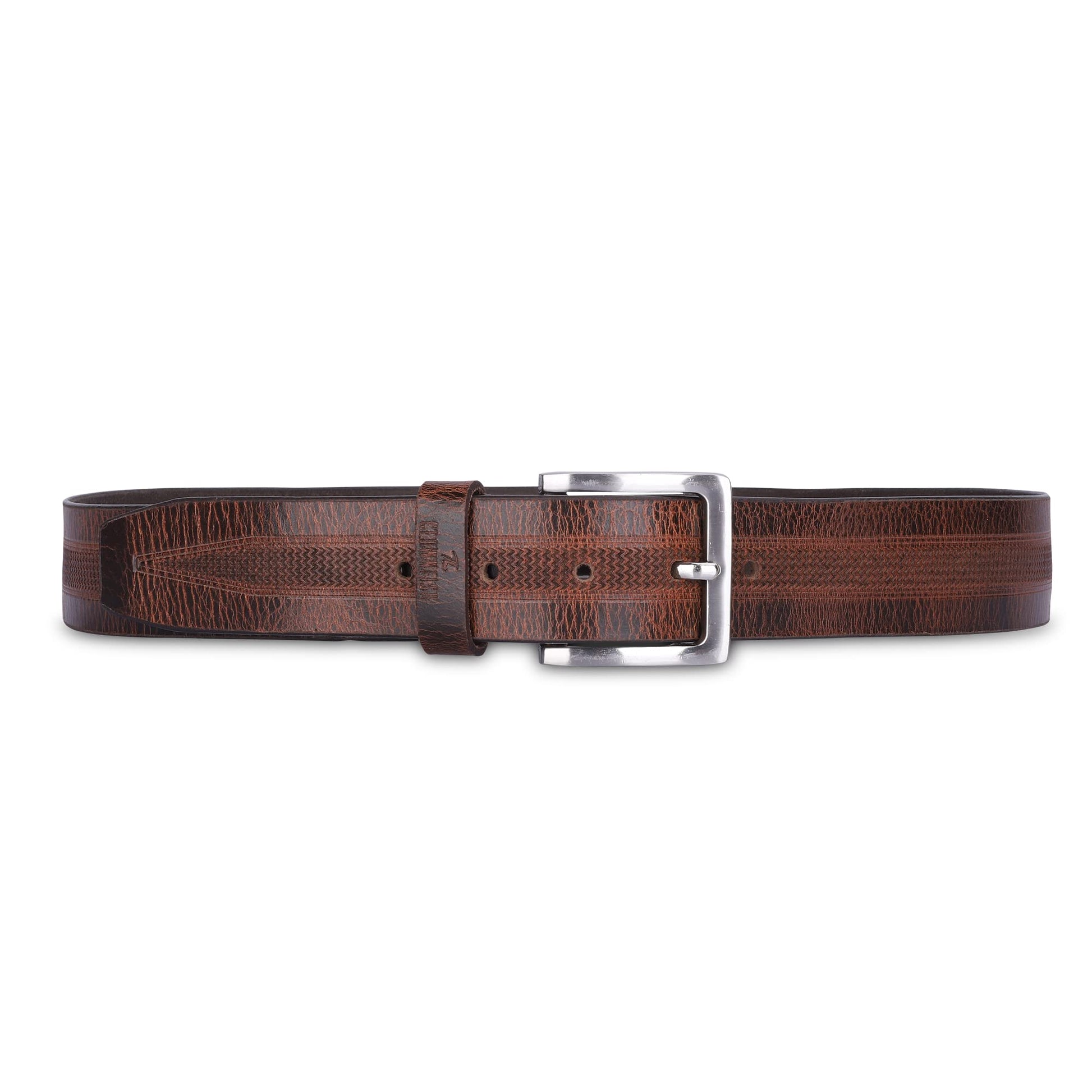 THE CLOWNFISH Men's Genuine Leather Belt with Embossed Design -Tan (Size-40 inches)