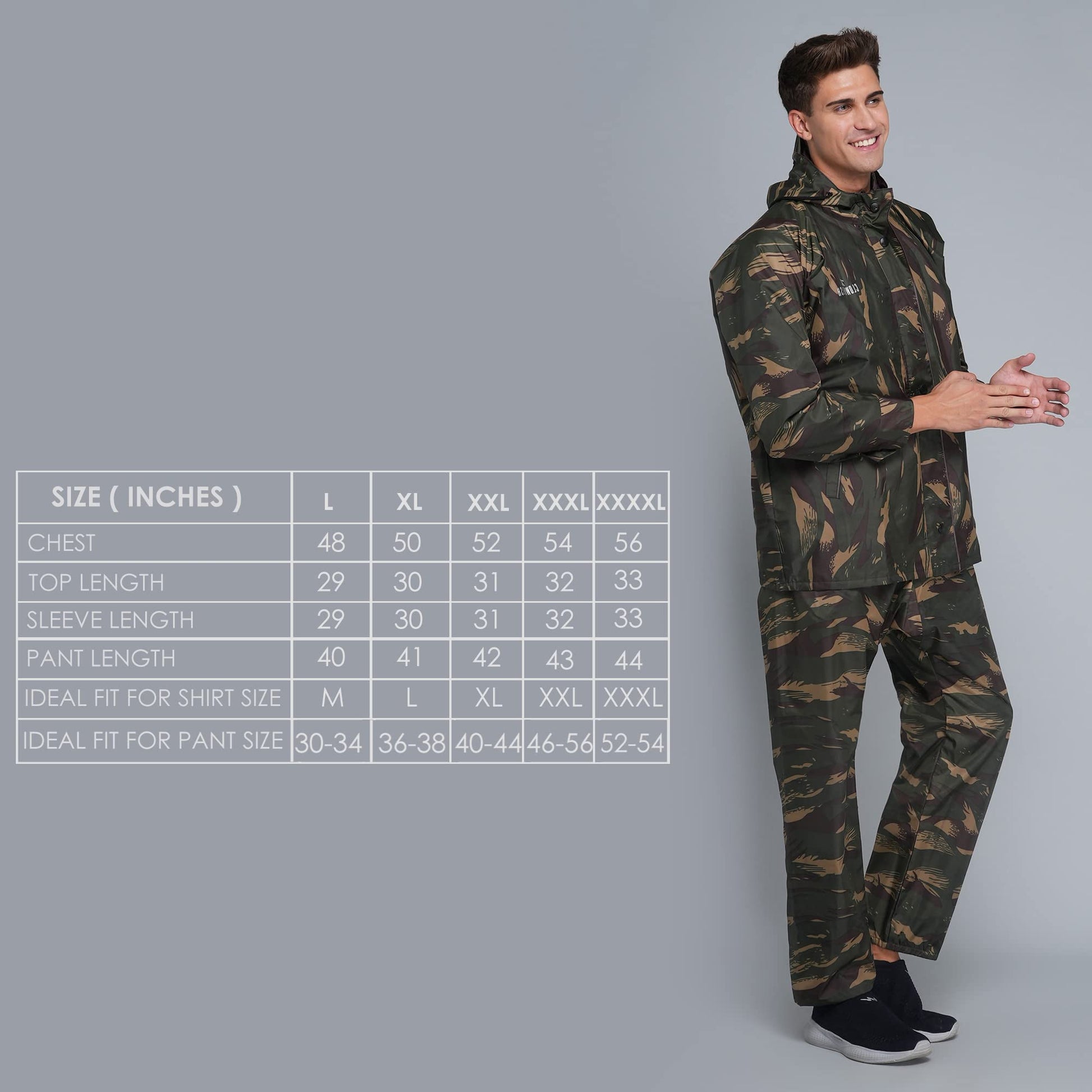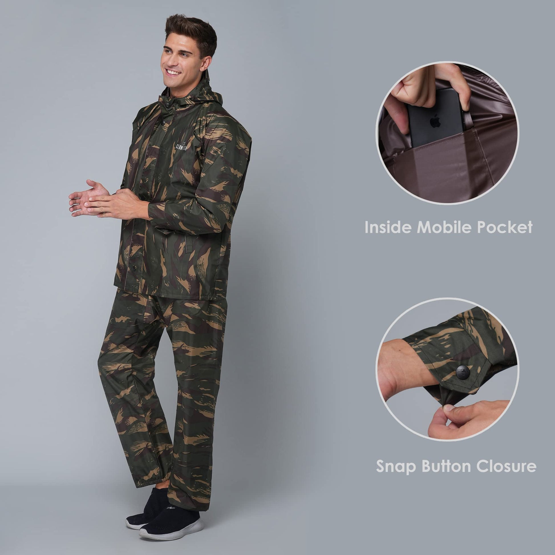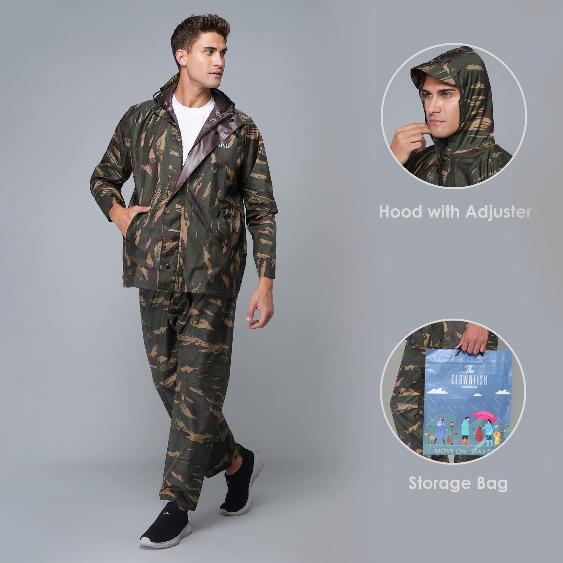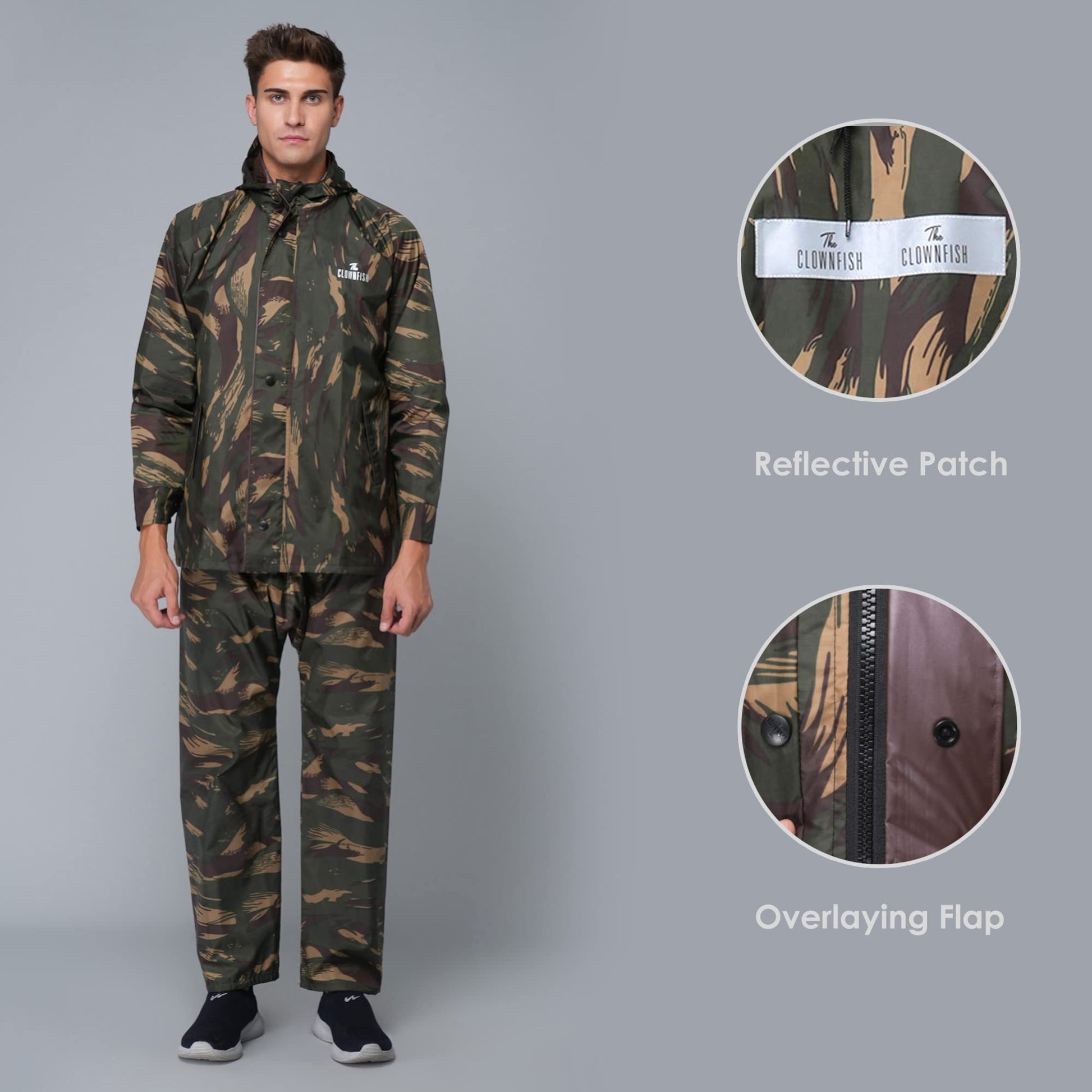 THE CLOWNFISH Polyester Men's Raincoat Standard Length Jacket Ranger Green Camo, Xl