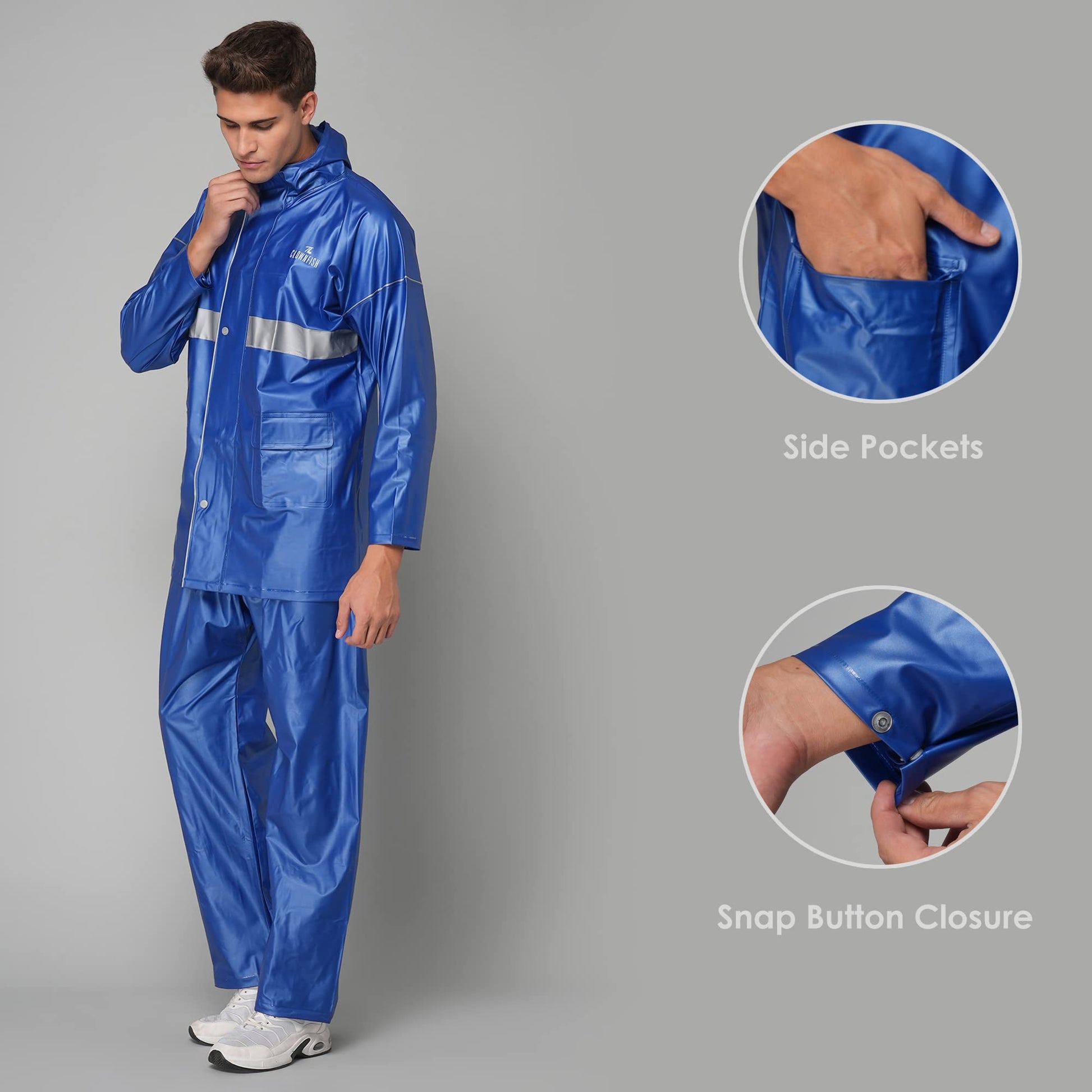 • HIGHLY WATERPROOF: The raincoat is made with premium waterproof polyester material, ensuring you remain dry under the heaviest of rains. Each joint is seam-sealed with additional leak-proof stitching for added durability.
