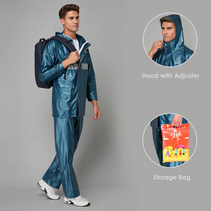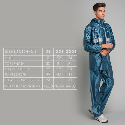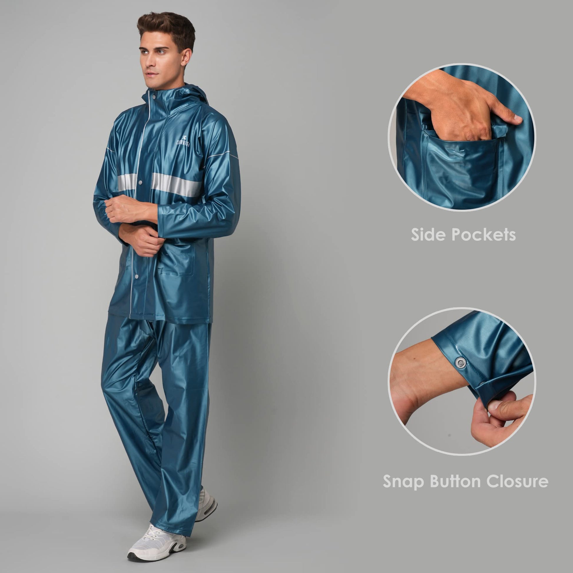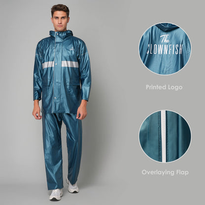 THE CLOWNFISH Rain Coat for Men Waterproof for Bike Raincoat for Men with Hood PVC Material. Set of Top and Bottom. Azure Pro Series (Bright Turquoise, X-Large)
