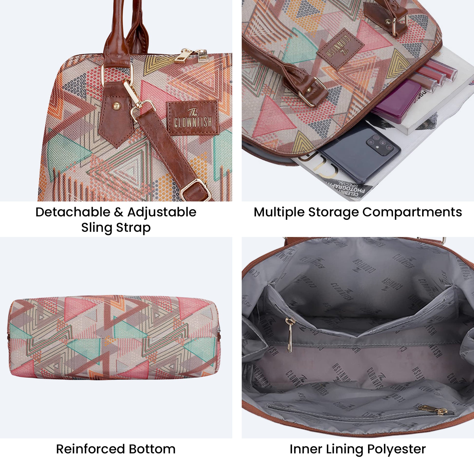 THE CLOWNFISH Montana Series Handbag for Women Office Bag Ladies Purse Shoulder Bag Tote For Women College Girls (Multicolour-Triangle)