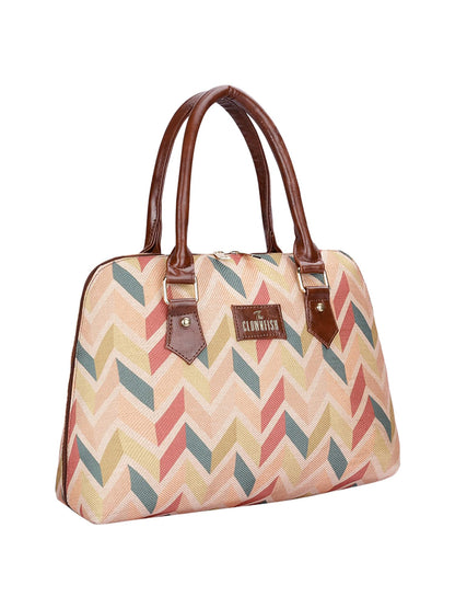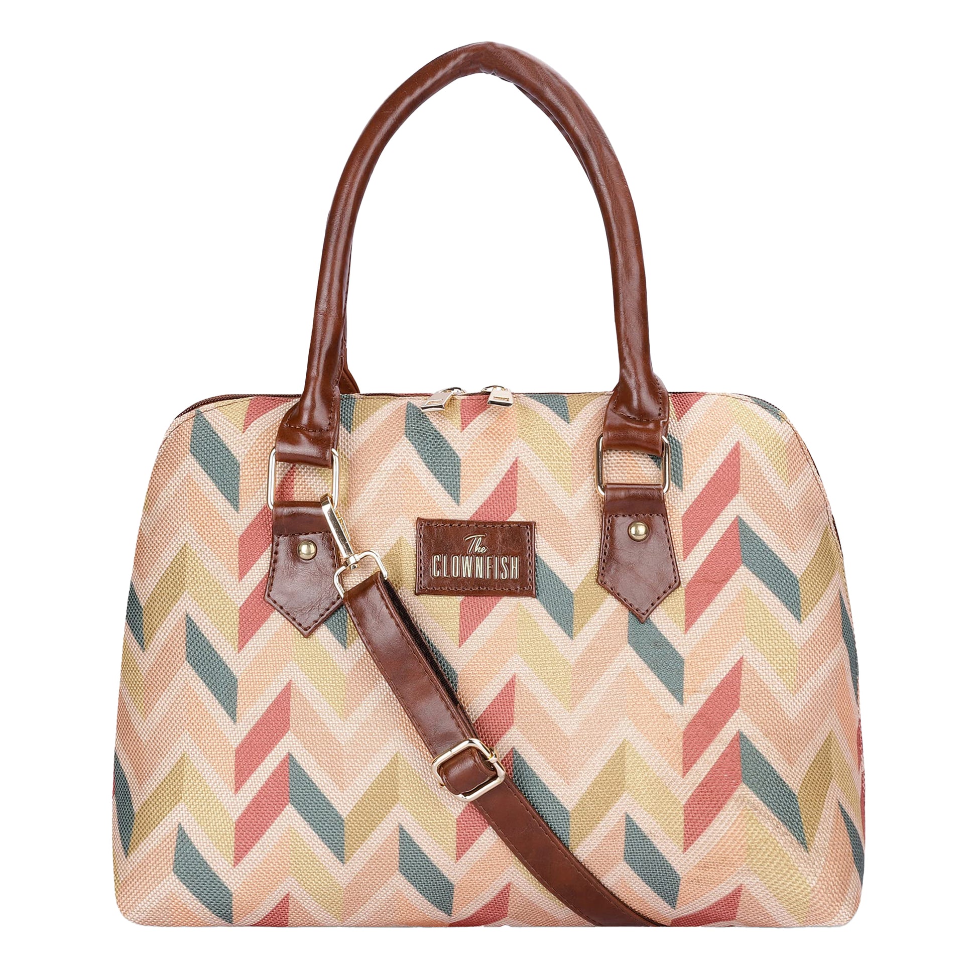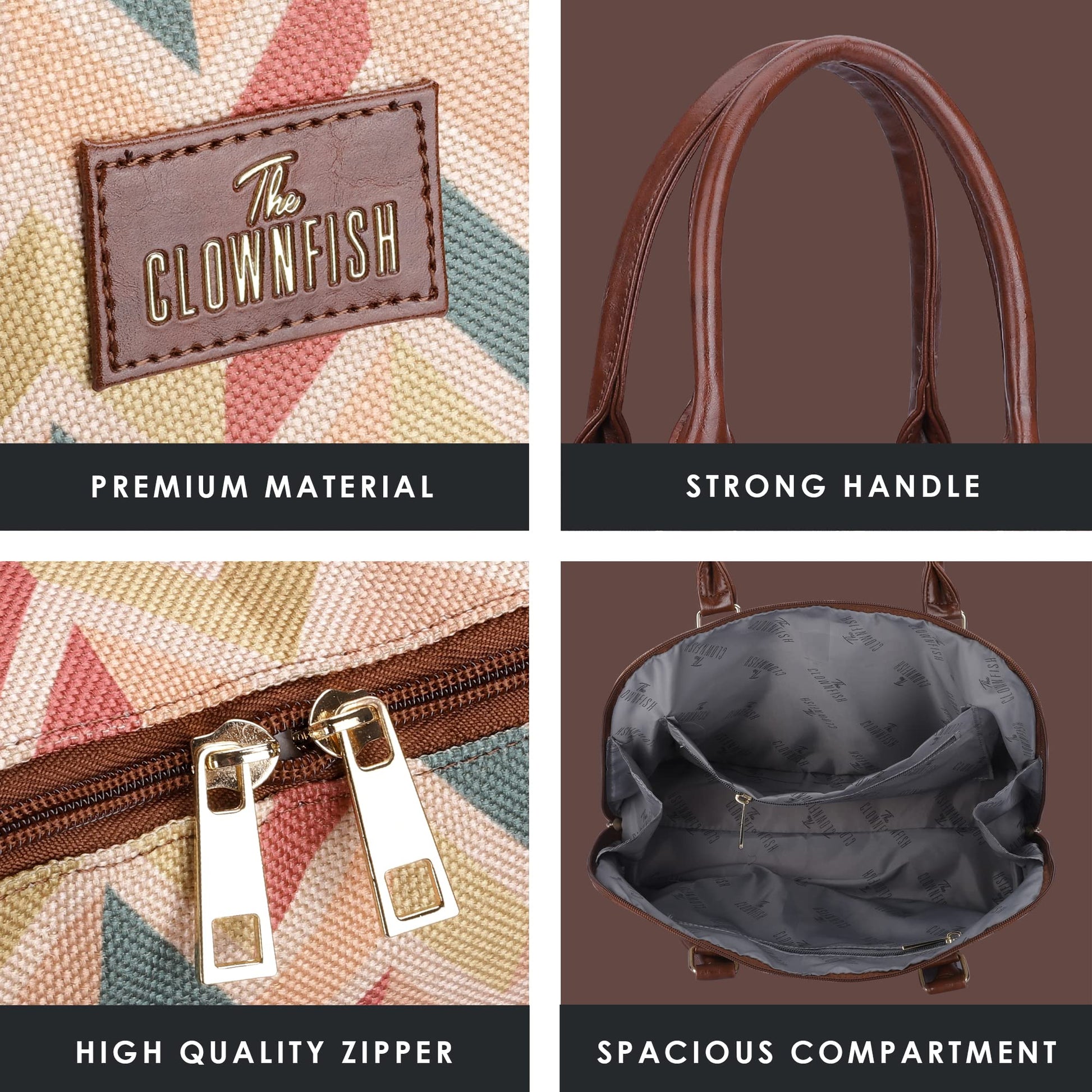 THE CLOWNFISH Montana Series Printed Handicraft Fabric & Faux leather Handbag for Women Office Bag Ladies Purse Shoulder Bag Tote For Women College Girls (Cream-1)