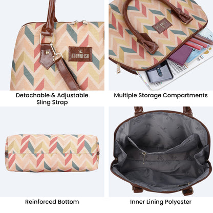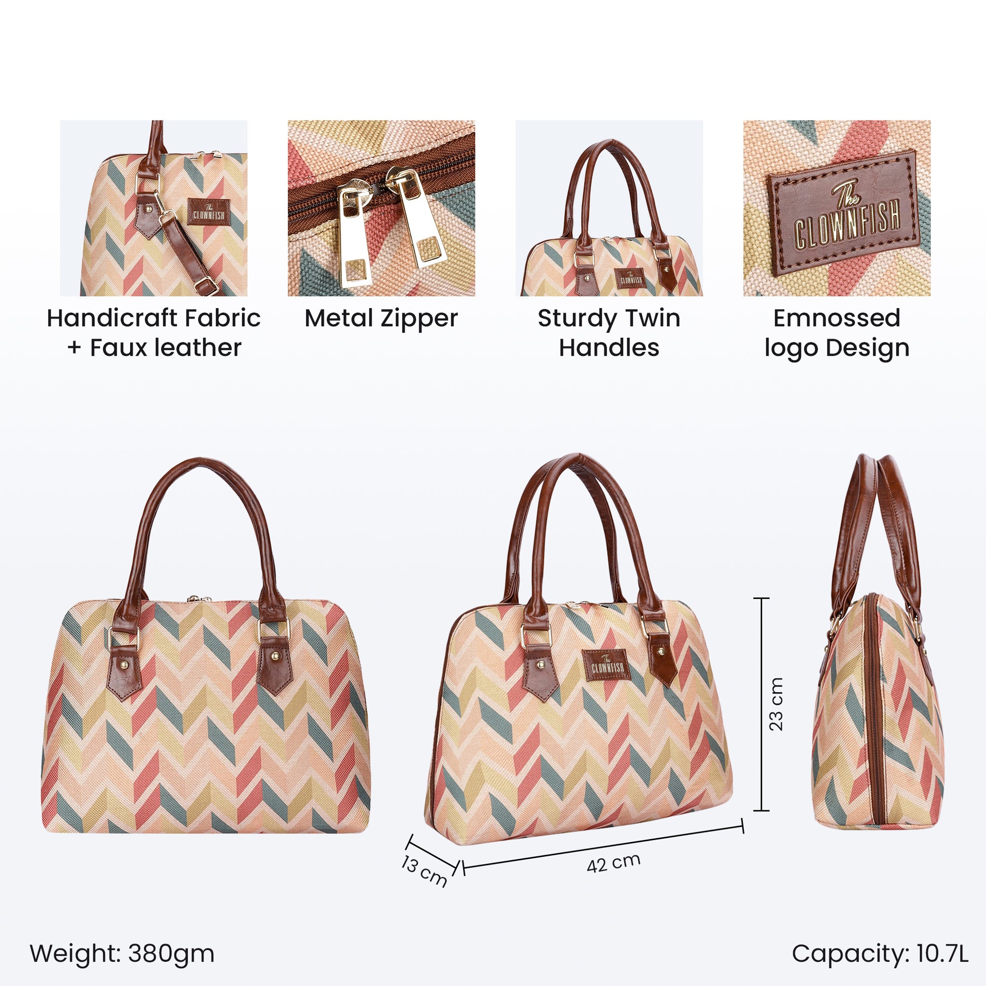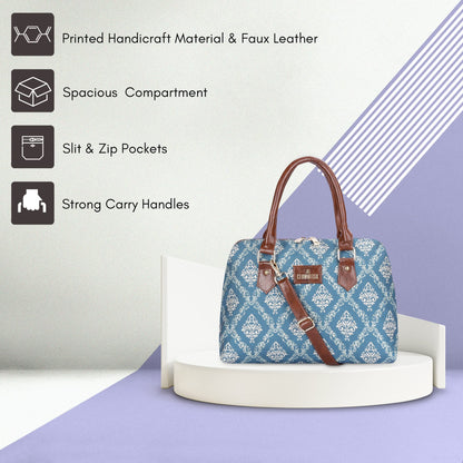 Elevate your accessory game with THE CLOWNFISH Montana Series Printed Handicraft Fabric & Faux Leather Handbag. Designed for modern women and college girls, this handbag seamlessly combines elegance with practicality.