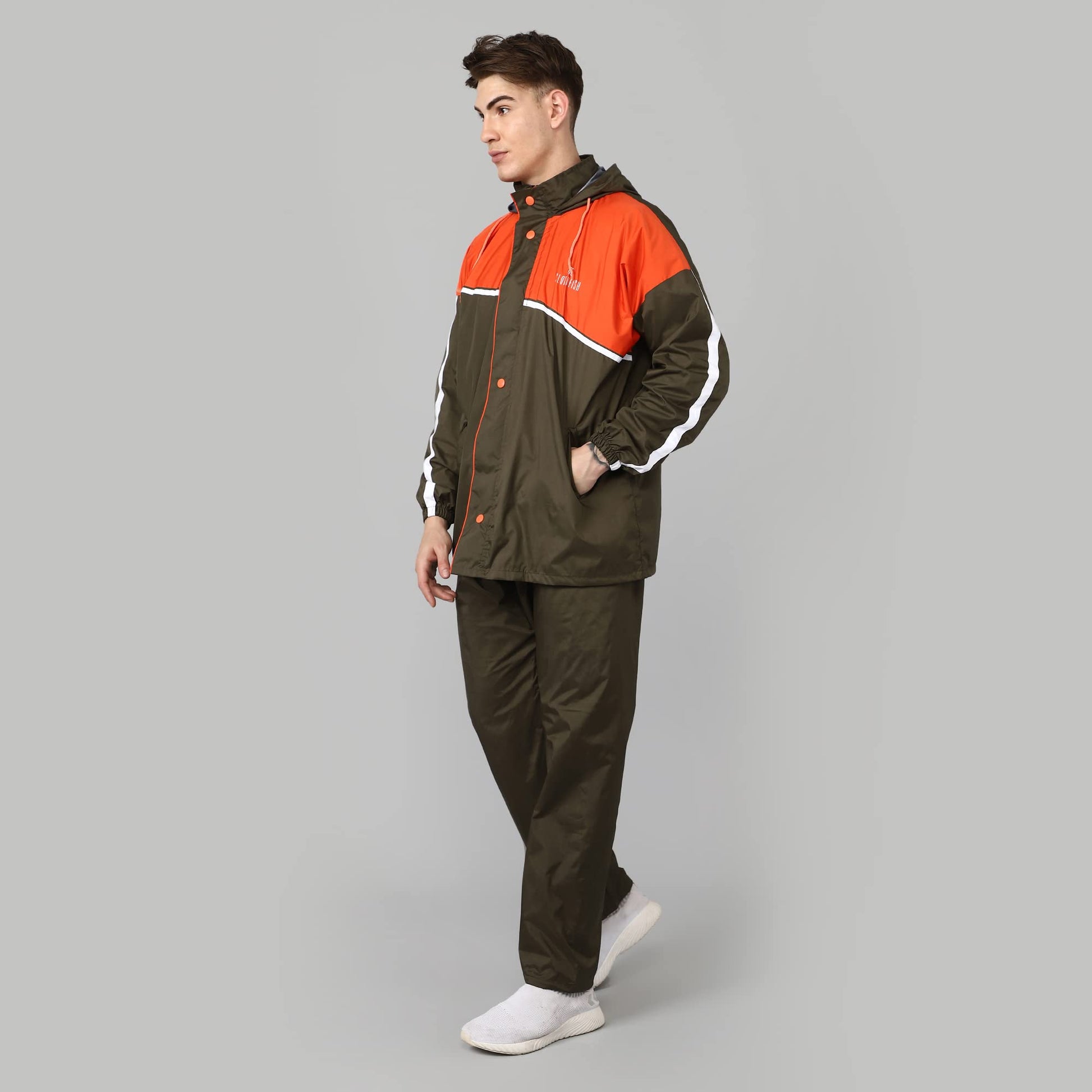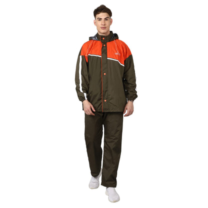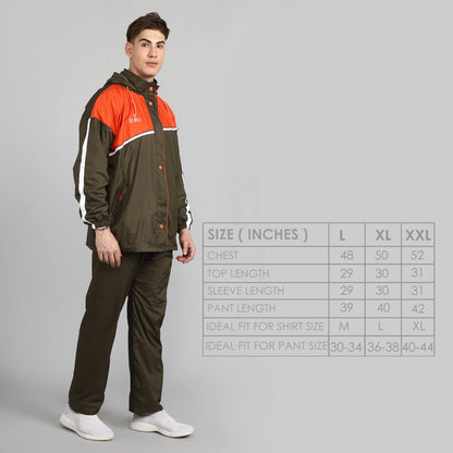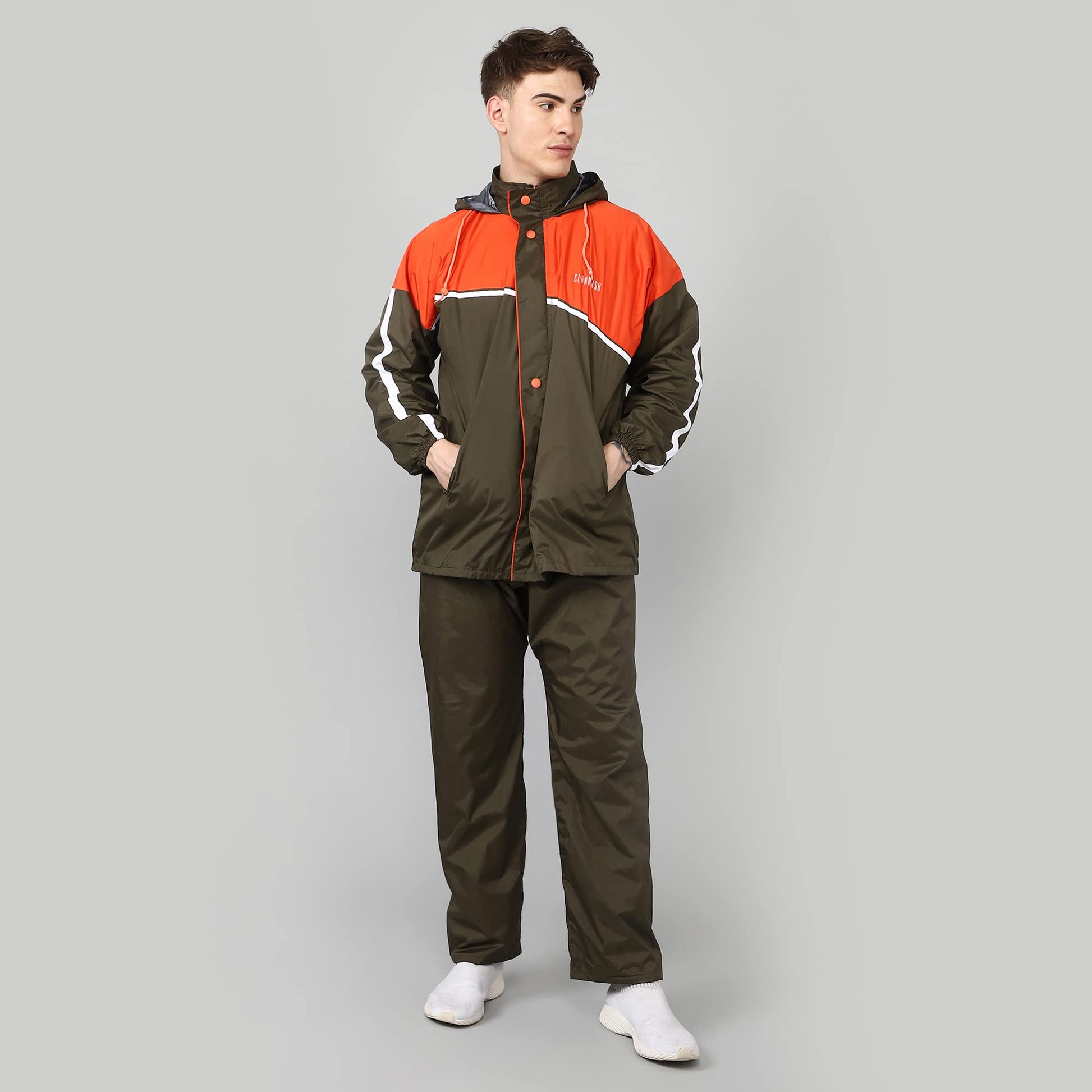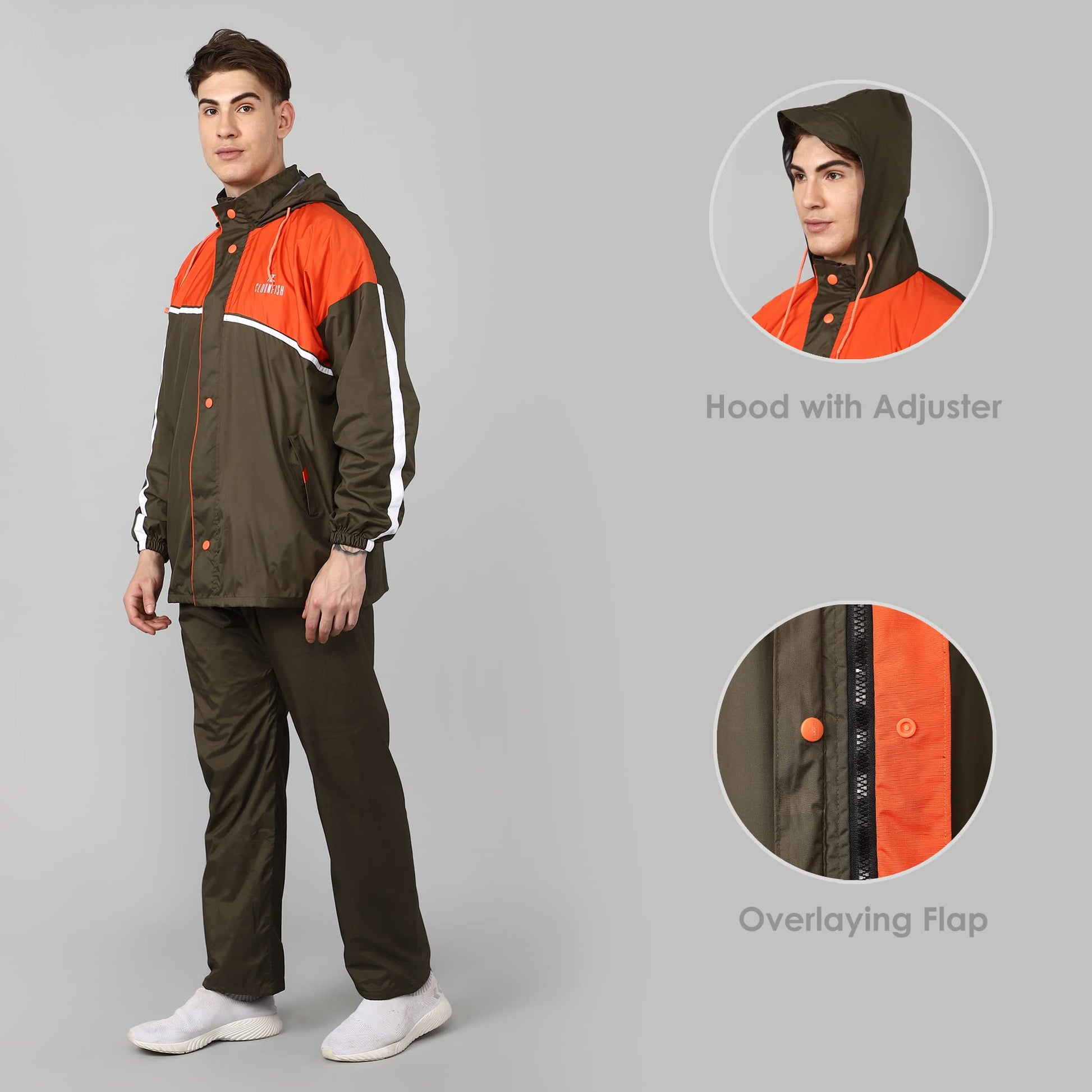 THE CLOWNFISH Nicholas Men's Waterproof Polyester Double Coating Reversible Raincoat with Adjustable Hood. Set of Top and Bottom. Drawstring Storage Bag. (Mehendi, XX-Large)