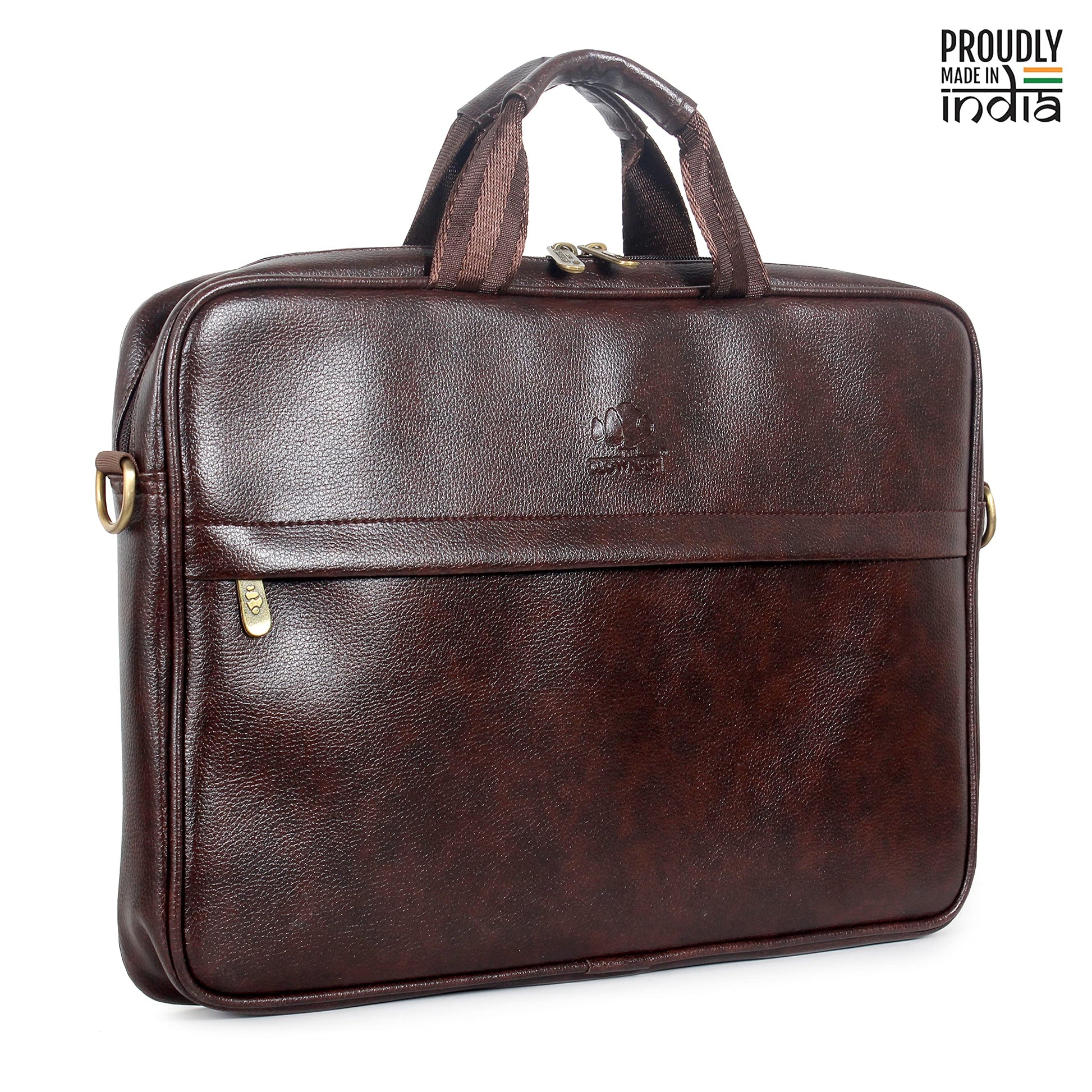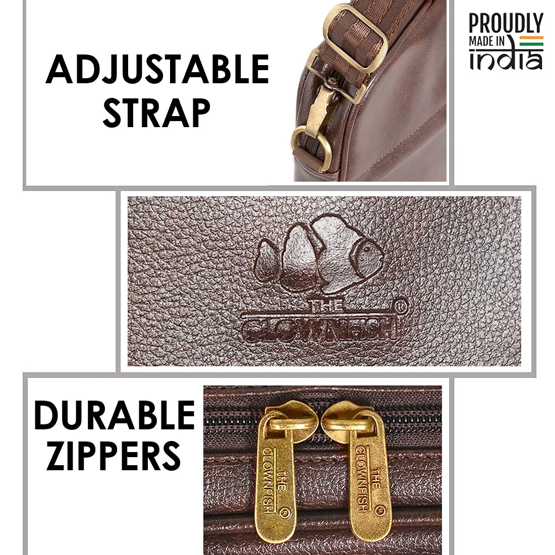 THE CLOWNFISH Noble Faux Leather 15.6 inch Best Laptop Messenger Briefcase Office Bag Shoulder Sling Bag Organizer Bag Executive Bag for Men Women with Multiple compartments (Dark Brown)