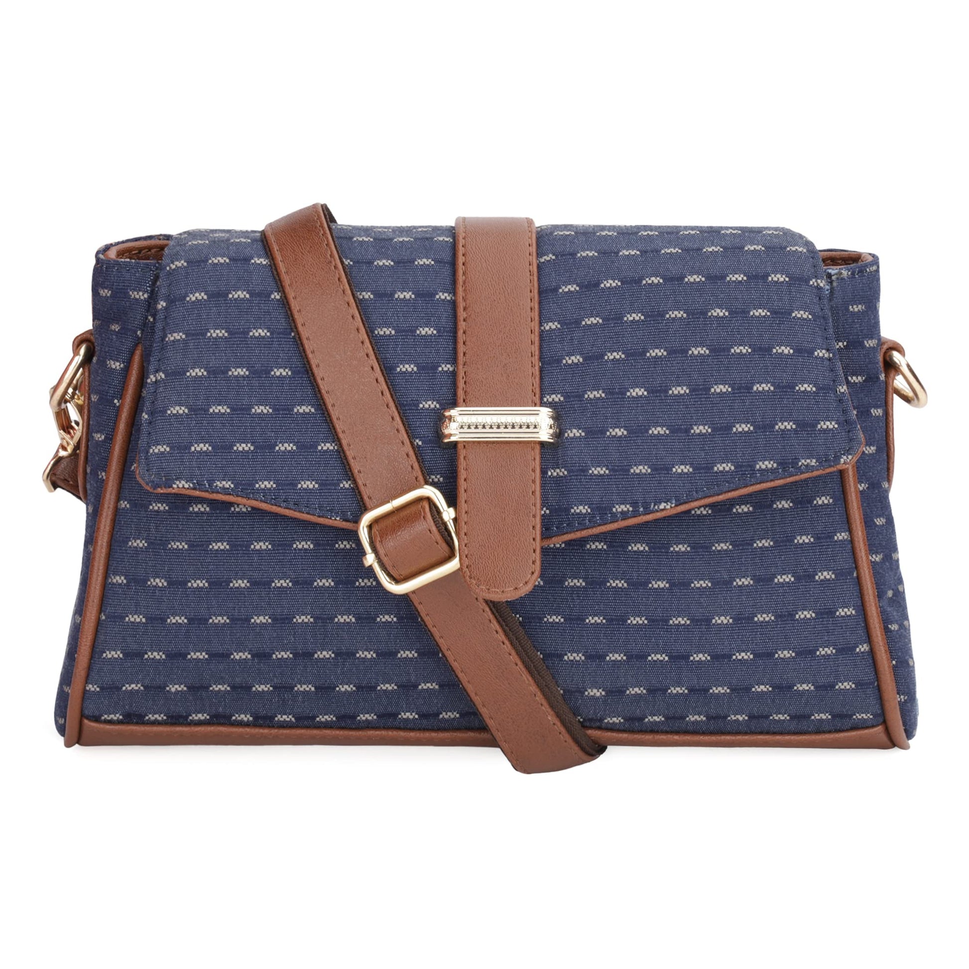 THE CLOWNFISH Odelina Series Printed Handicraft Fabric Sling Bag Handbag for Women Crossbody Bag Office Bag Ladies Single Shoulder Bag with Snap Flap Closure & Shoulder Belt For Women (Cream)