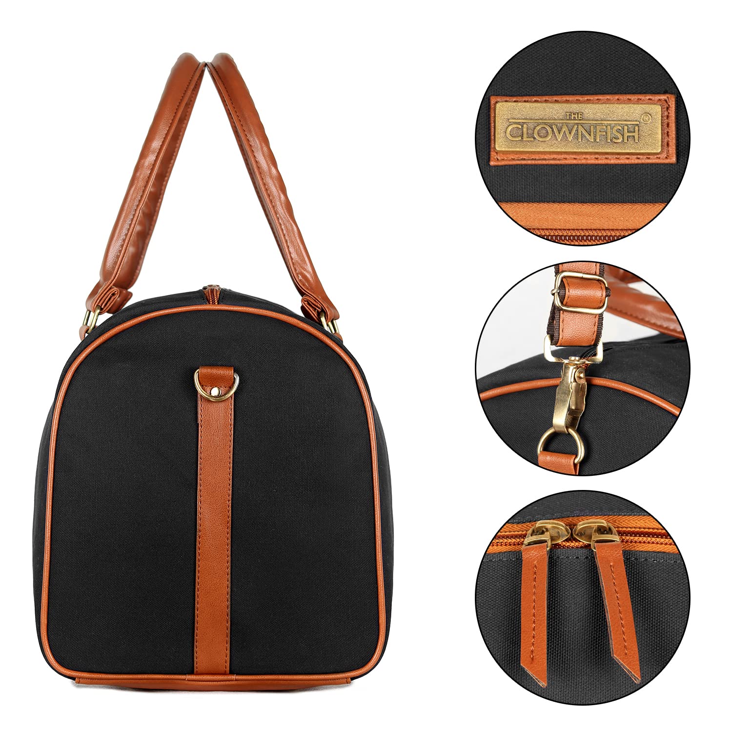 THE CLOWNFISH Polyester Concordia Canvas Stylish & Spacious Weekender Duffle Bag For Men & Women (Black, 24L), 20 Centimeters