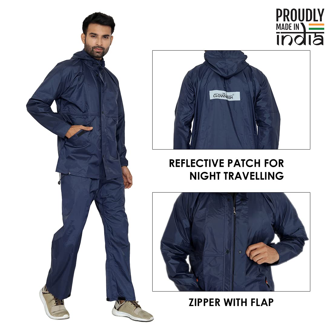 Introducing the THE CLOWNFISH Rain Coat for Men, your ultimate waterproof solution for unpredictable weather. Made from premium 100% nylon material, this raincoat includes both top and bottom pieces, designed for maximum comfort and functionality. Available in X-Large size, the striking Seal Blue color ensures you remain visible and safe on your journeys.