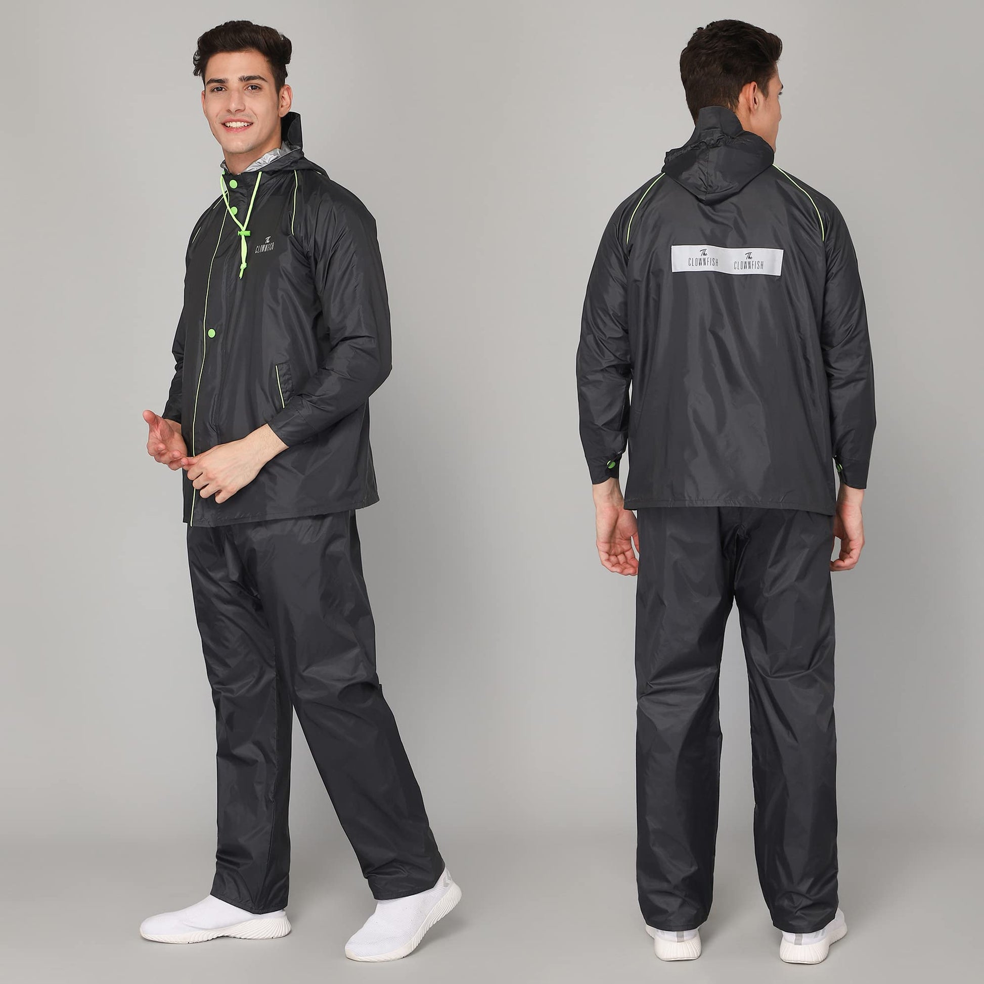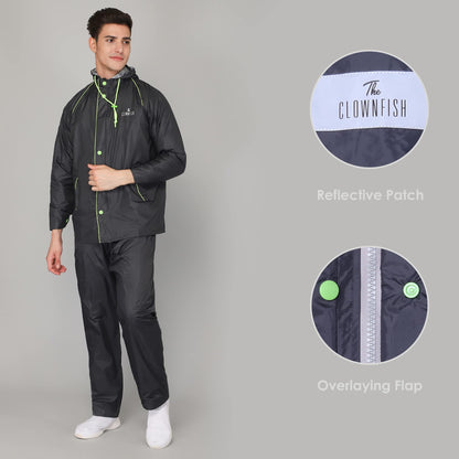 THE CLOWNFISH Rain Coat for Men Waterproof for Bike Reversible Double Layer with Hood Raincoat for Men. Set of Top and Bottom Packed in a Storage Bag Captain Pro Series (Grey, XX-Large)