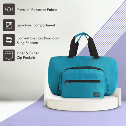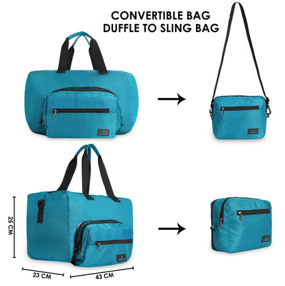 The Rebecca Series 25 litres Polyester Convertible Travel Duffle Bag Weekender Bag Crossbody Sling Bag (Turquiose Blue)