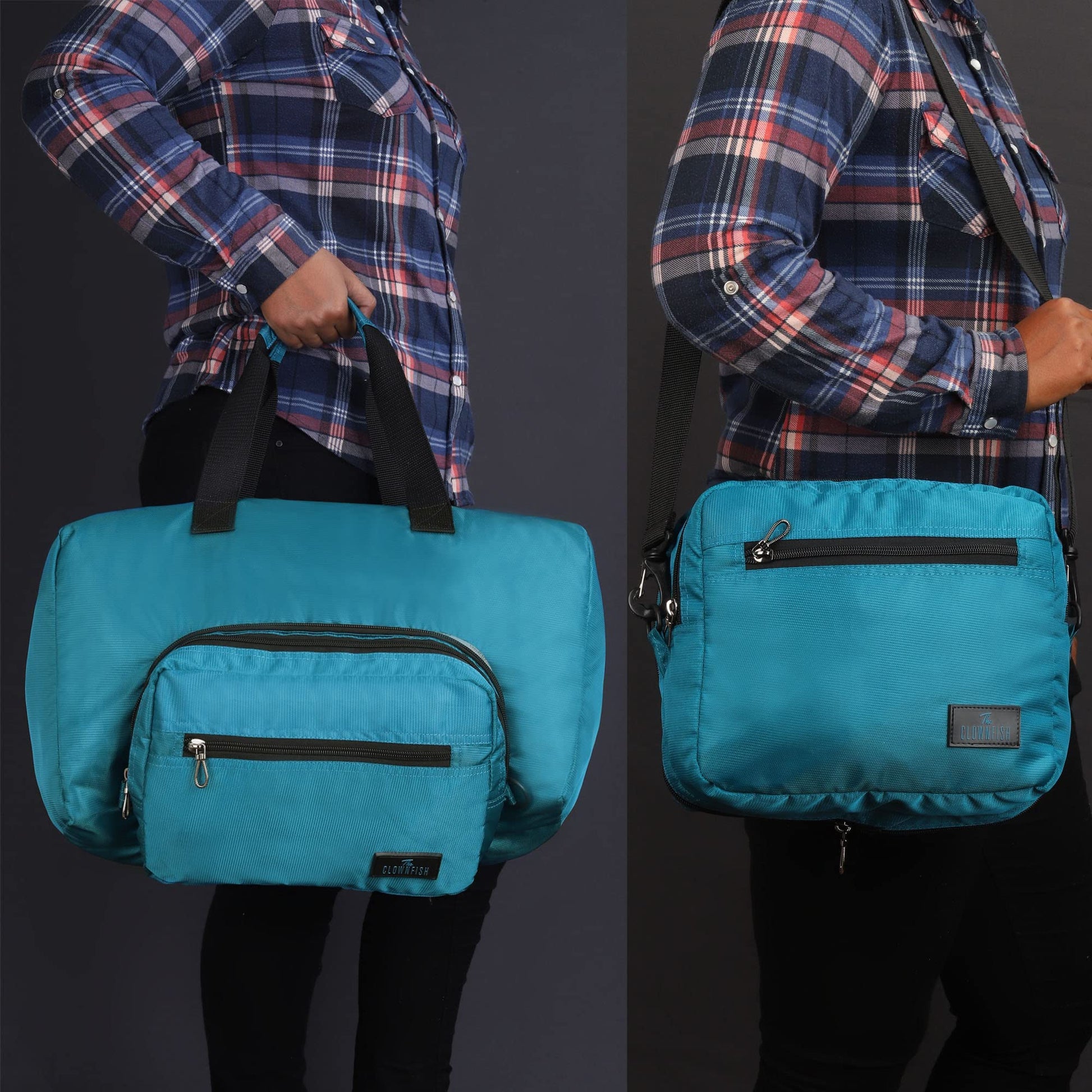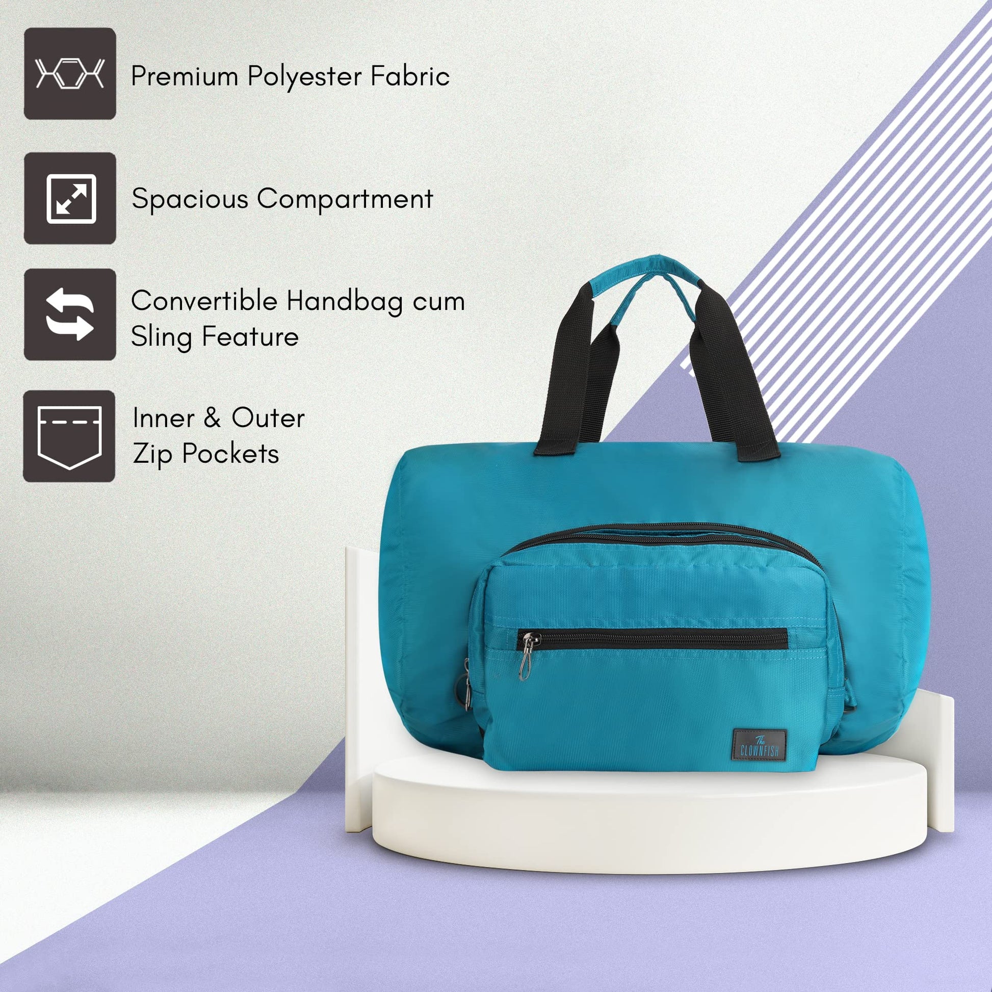 The Clownfish Rebecca Series 25 litres Polyester Convertible Travel Duffle Bag Weekender Bag Crossbody Sling Bag (Turquiose Blue)
