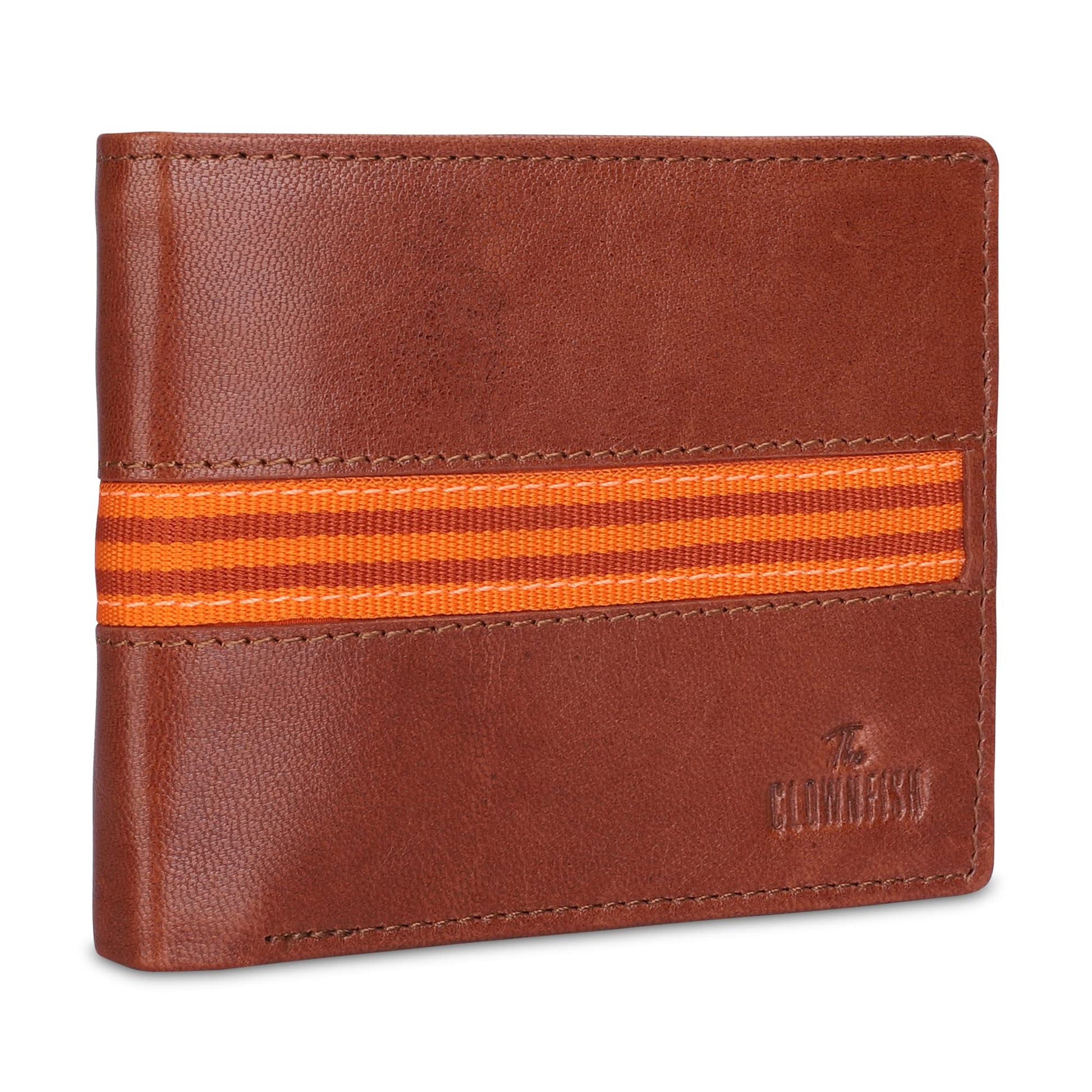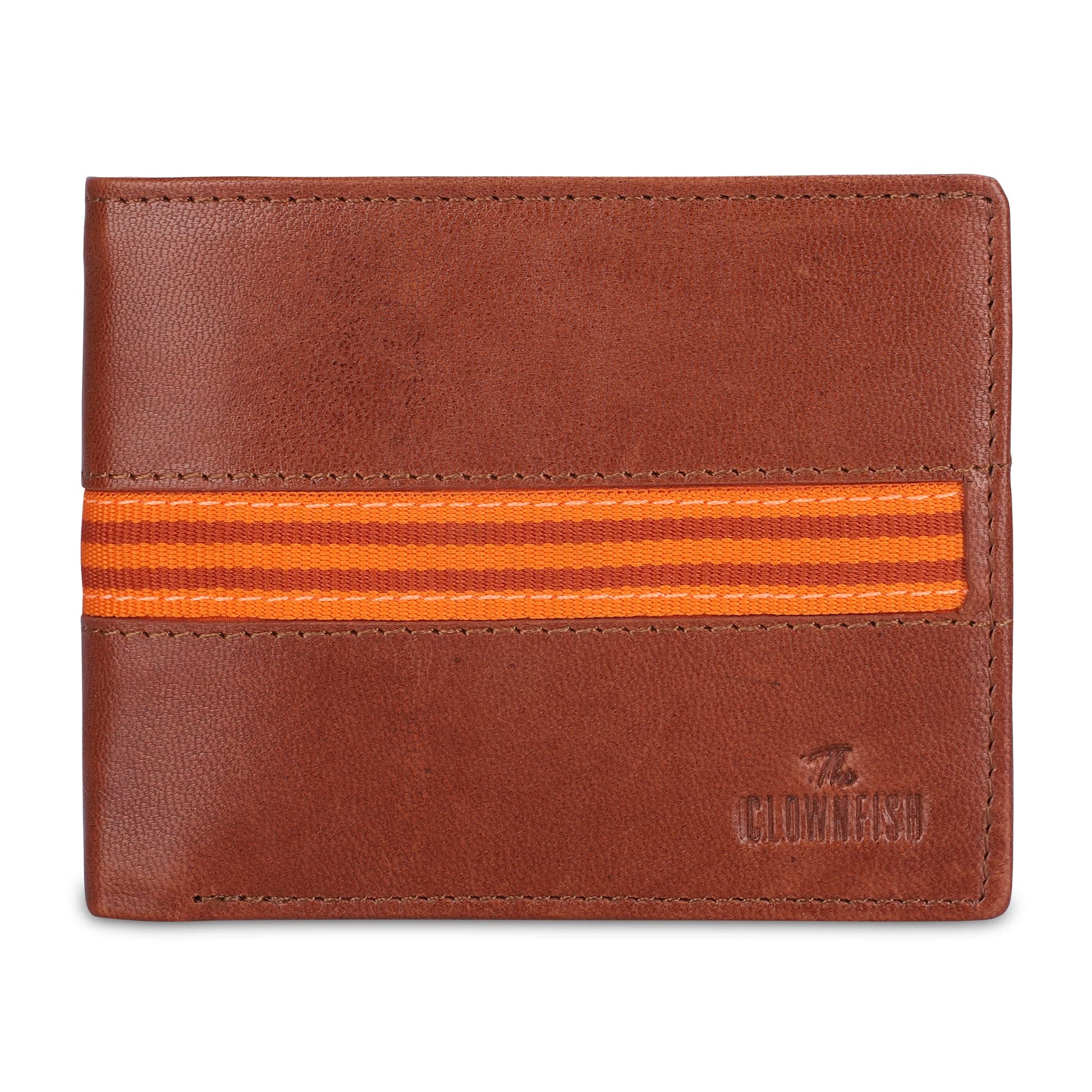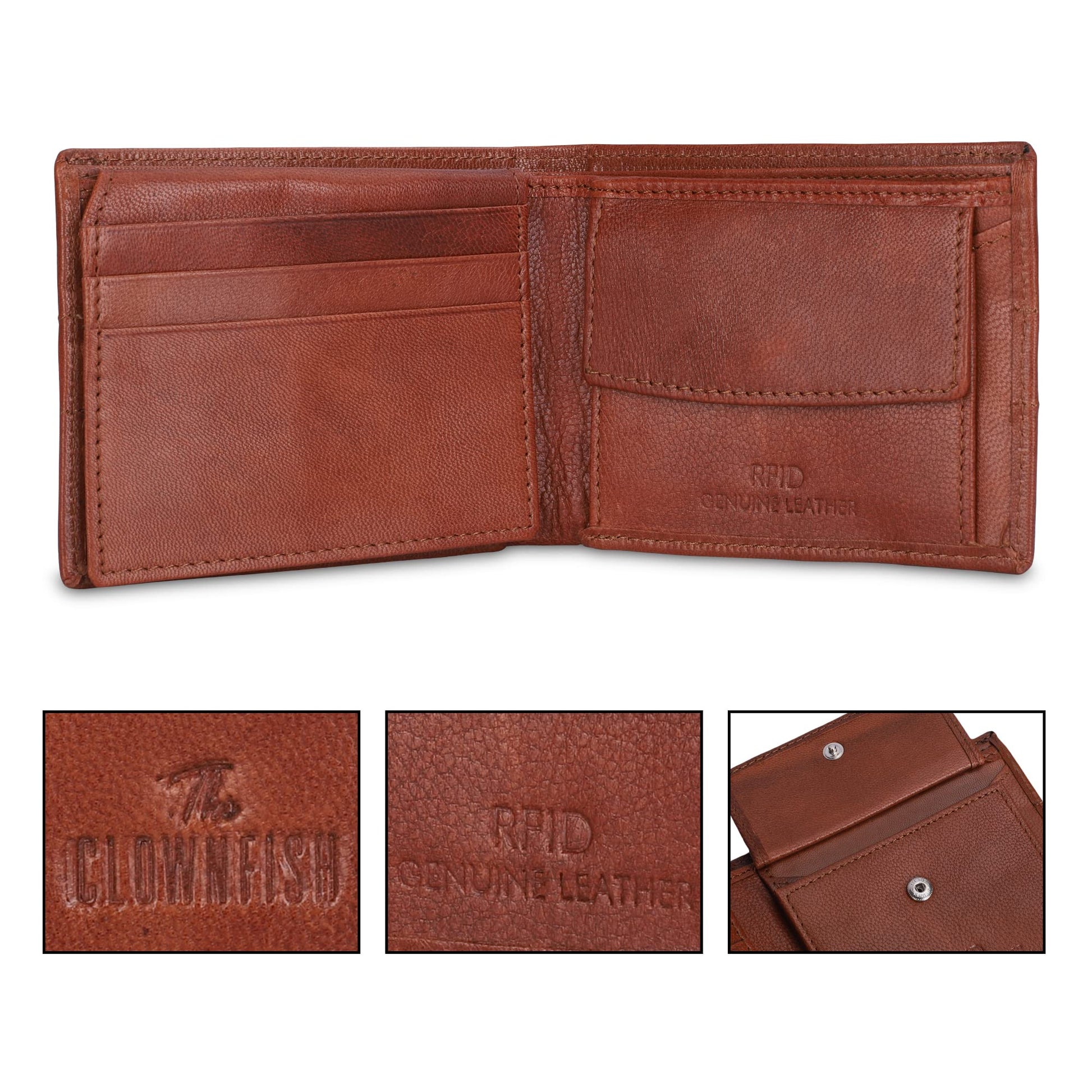 THE CLOWNFISH RFID Protected Genuine Leather Bi-Fold Wallet for Men with Multiple Card Slots, Coin Pocket & Transparent ID window (Tan)
