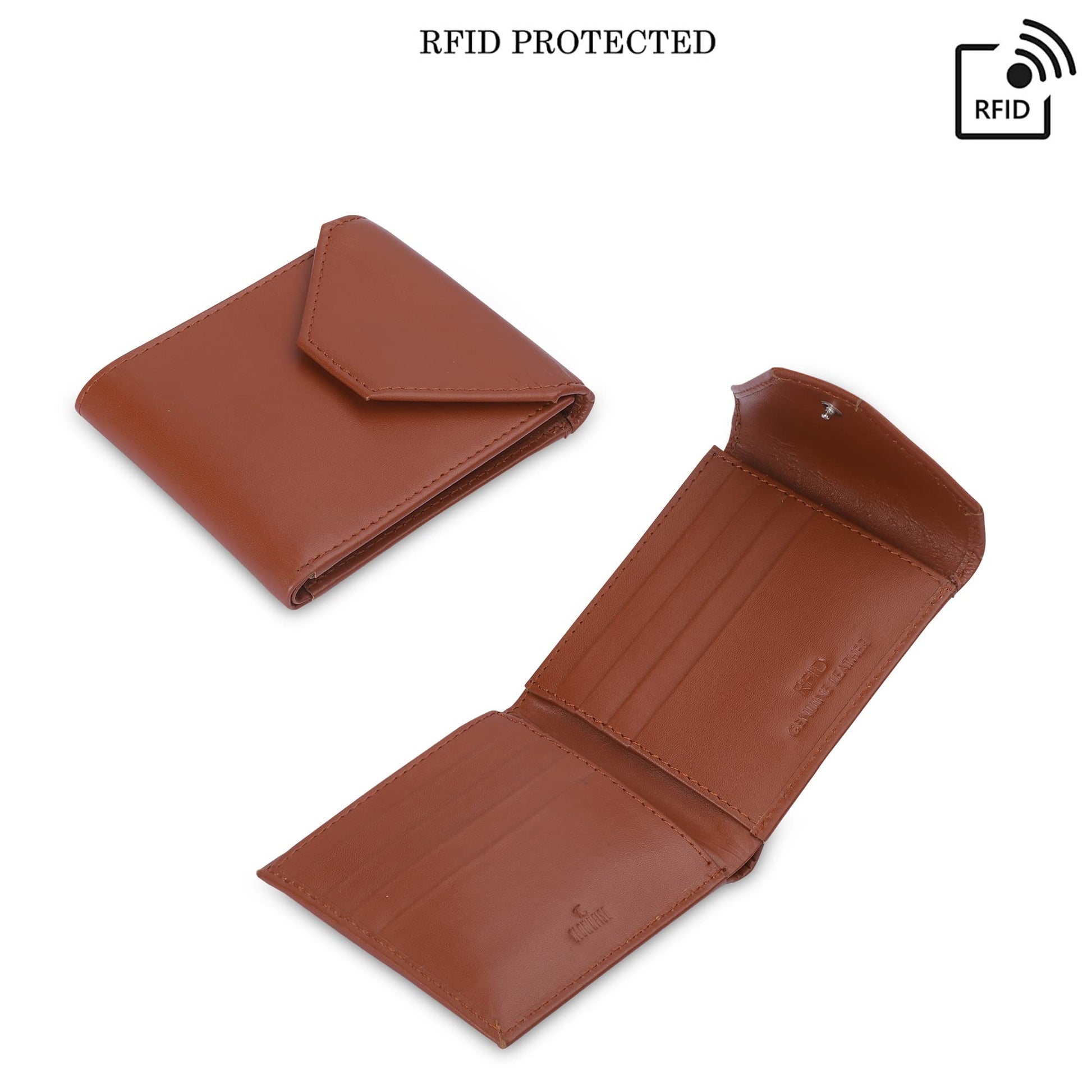THE CLOWNFISH RFID Protected Genuine Leather Wallet for Men with Multiple Card Slots (Tan)