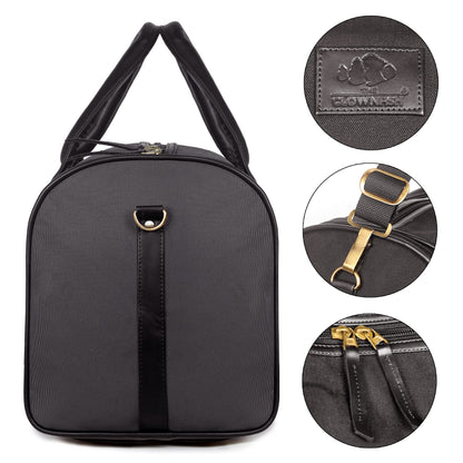 The Clownfish Rio 34 litres Canvas with Faux Leather Unisex Travel Duffle Bag Weekender Bag (Grey)