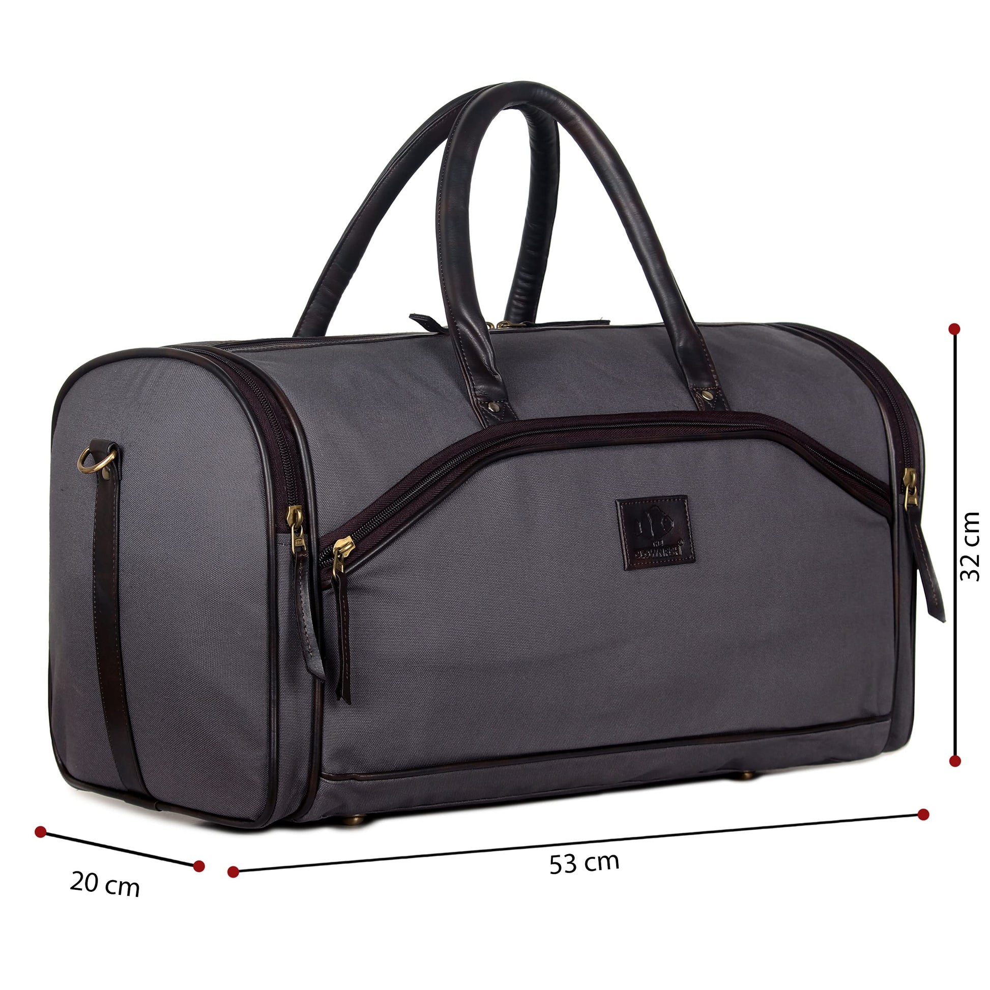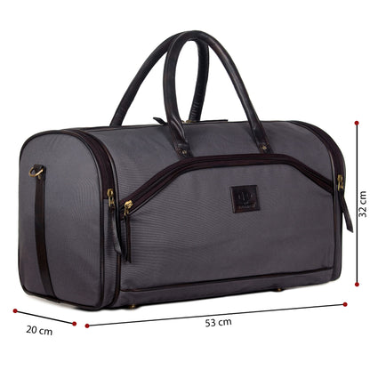 The Rio 34 litres Canvas with Faux Leather Unisex Travel Duffle Bag Weekender Bag (Grey)