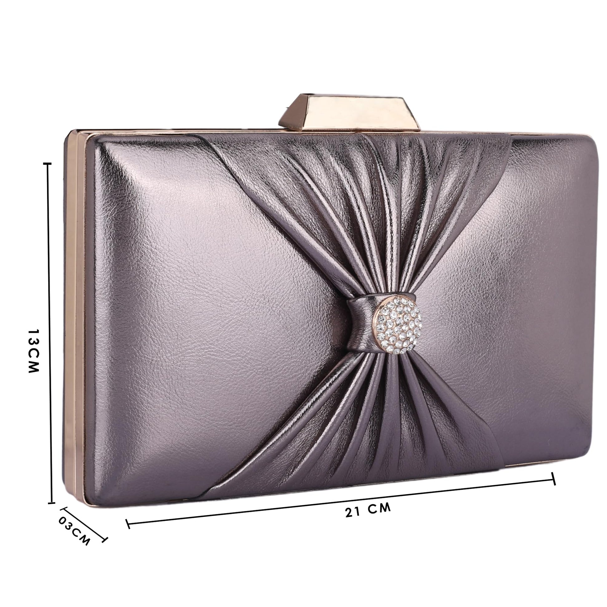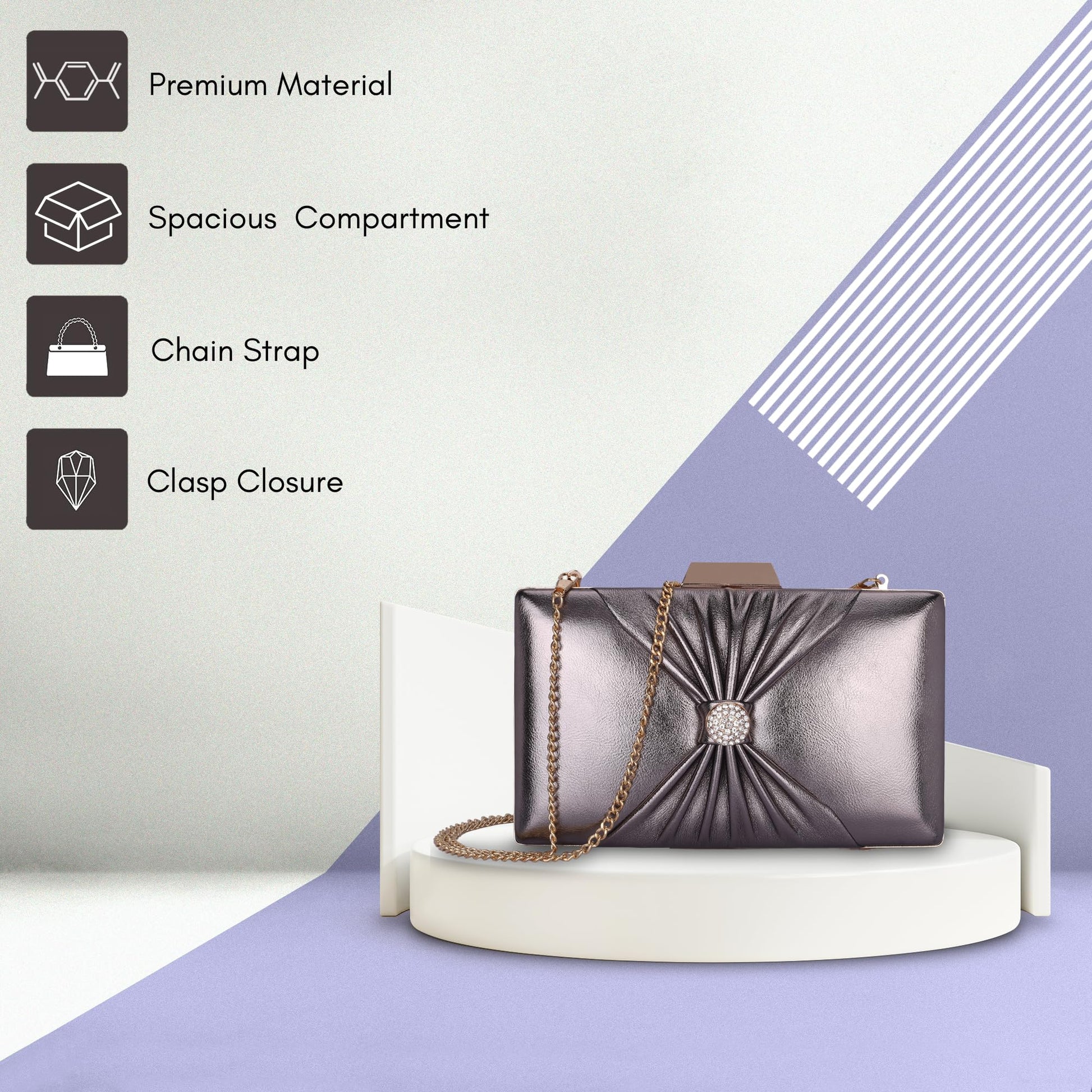 THE CLOWNFISH Ritzy Collection Faux Leather Womens Party Clutch Ladies Wallet with Chain Strap Evening Bag with Fashionable Button Closure (Dark Grey)