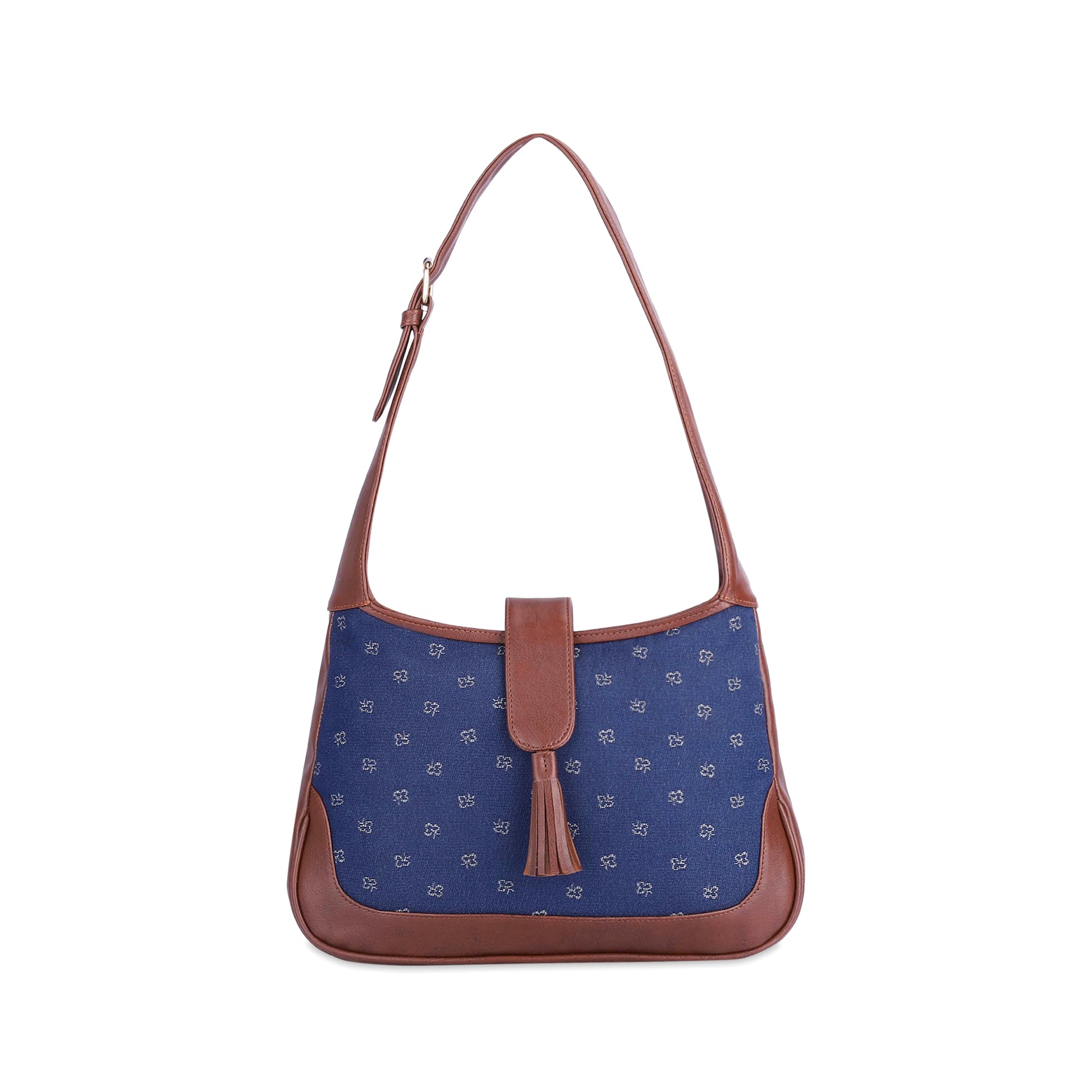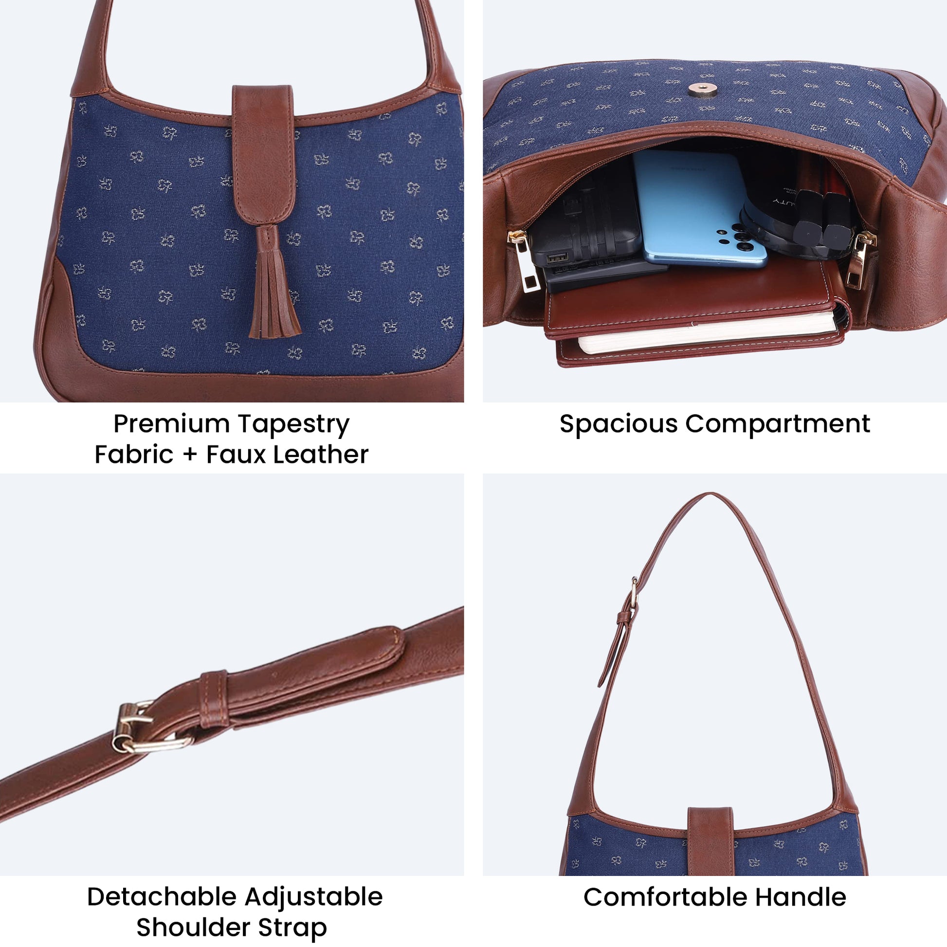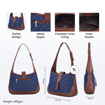 THE CLOWNFISH Samantha Tapestry & Faux Leather Handbag for Women Office Bag Ladies Shoulder Bag Tote For Women College Girls (Blue-Spade Design)