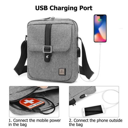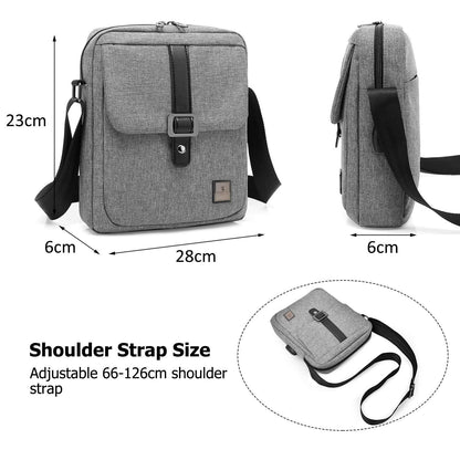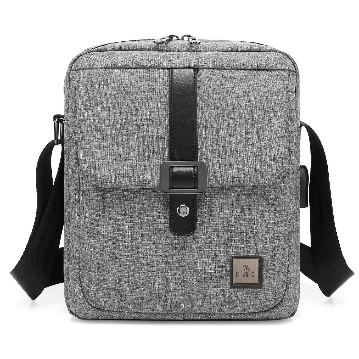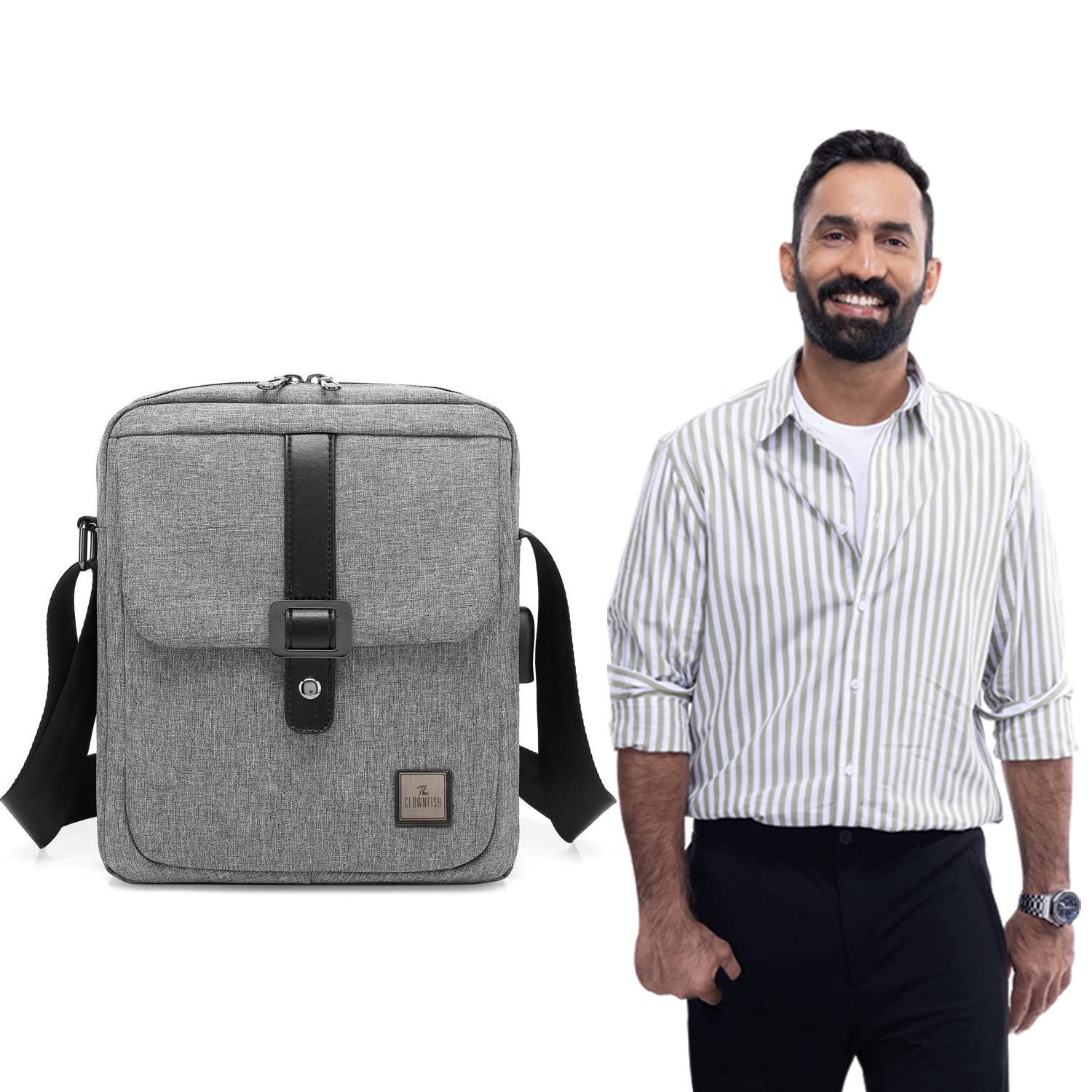 THE CLOWNFISH Single Shoulder Unisex Water Resistant Polyester 10.6 inch Tablet Bag Sling Bag with External USB Interface (Grey)
