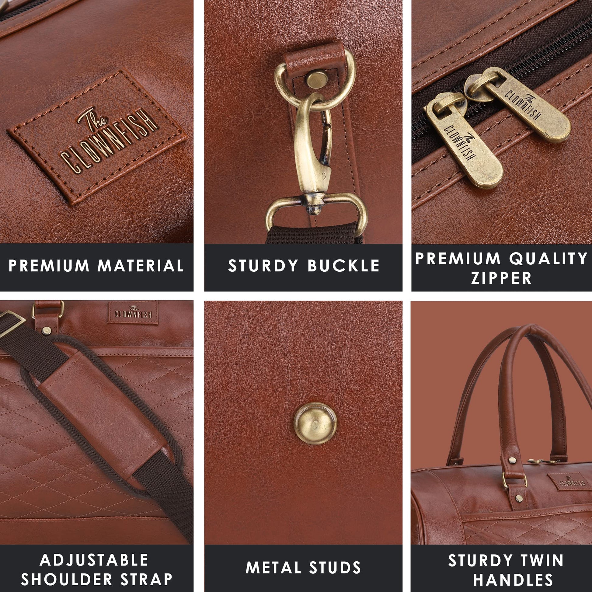 THE CLOWNFISH Solace Vegan Leather 32 Litre Unisex Faux Leather Travel Duffle Bag Cabin Luggage Bag (Cinnamon),23 Cm, Brown