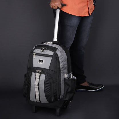 Shopping Trolley Bag with 2 Wheels | Foldabe and Collapsible | Grocery Bag for Fruits and Vegetables | Removable Luggaage Bag with 38 litres Capacity (Black & White)