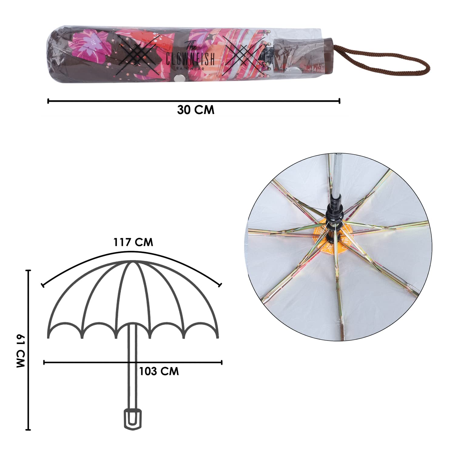 Stay dry and stylish with THE CLOWNFISH Umbrella, expertly designed for both men and women. This 3-fold auto-open umbrella combines functionality with a chic printed design in an elegant dark brown shade.