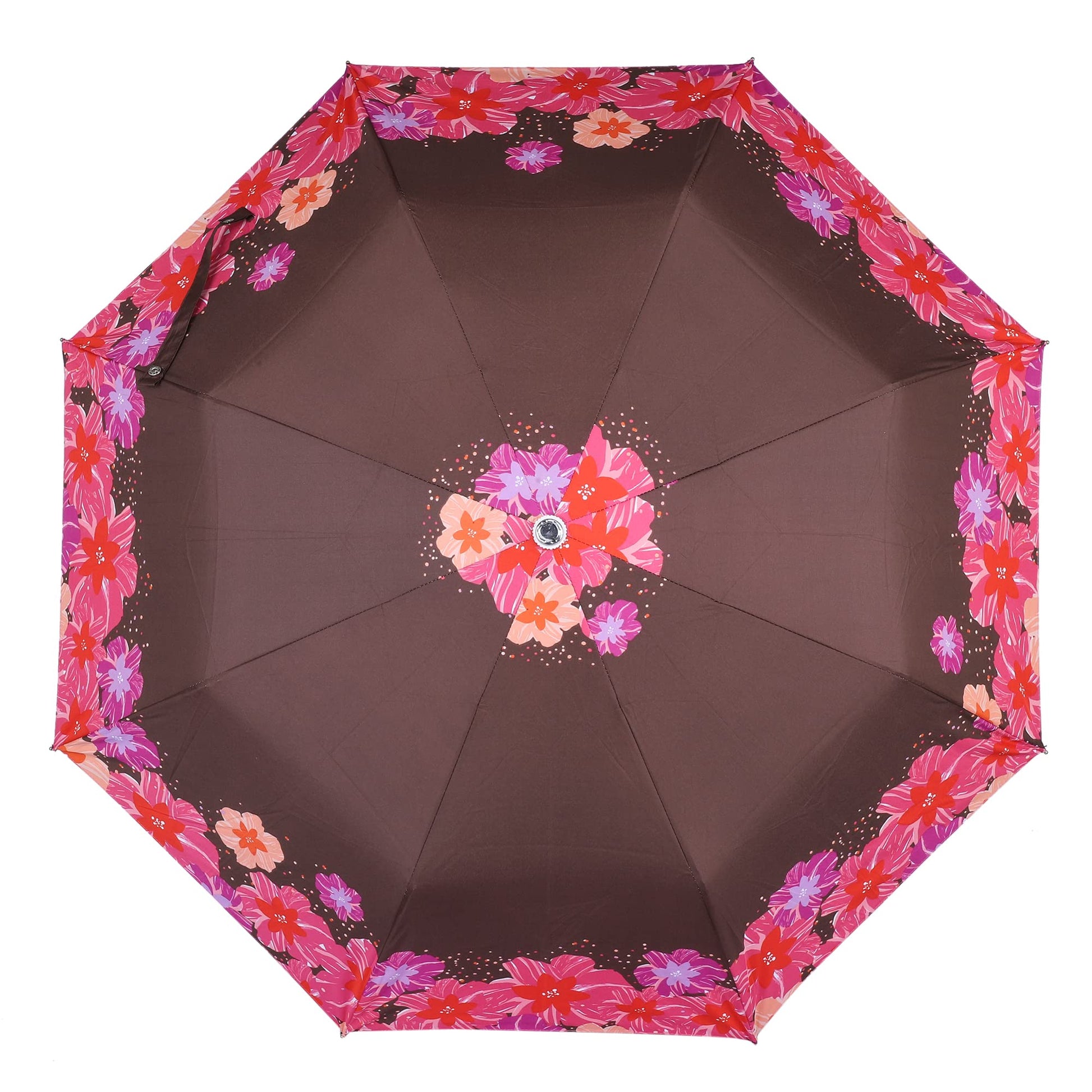 THE CLOWNFISH Umbrella 3 Fold Auto Open Waterproof Pongee Double Coated Silver Lined Umbrellas For Men and Women (Printed Design- Dark Brown)