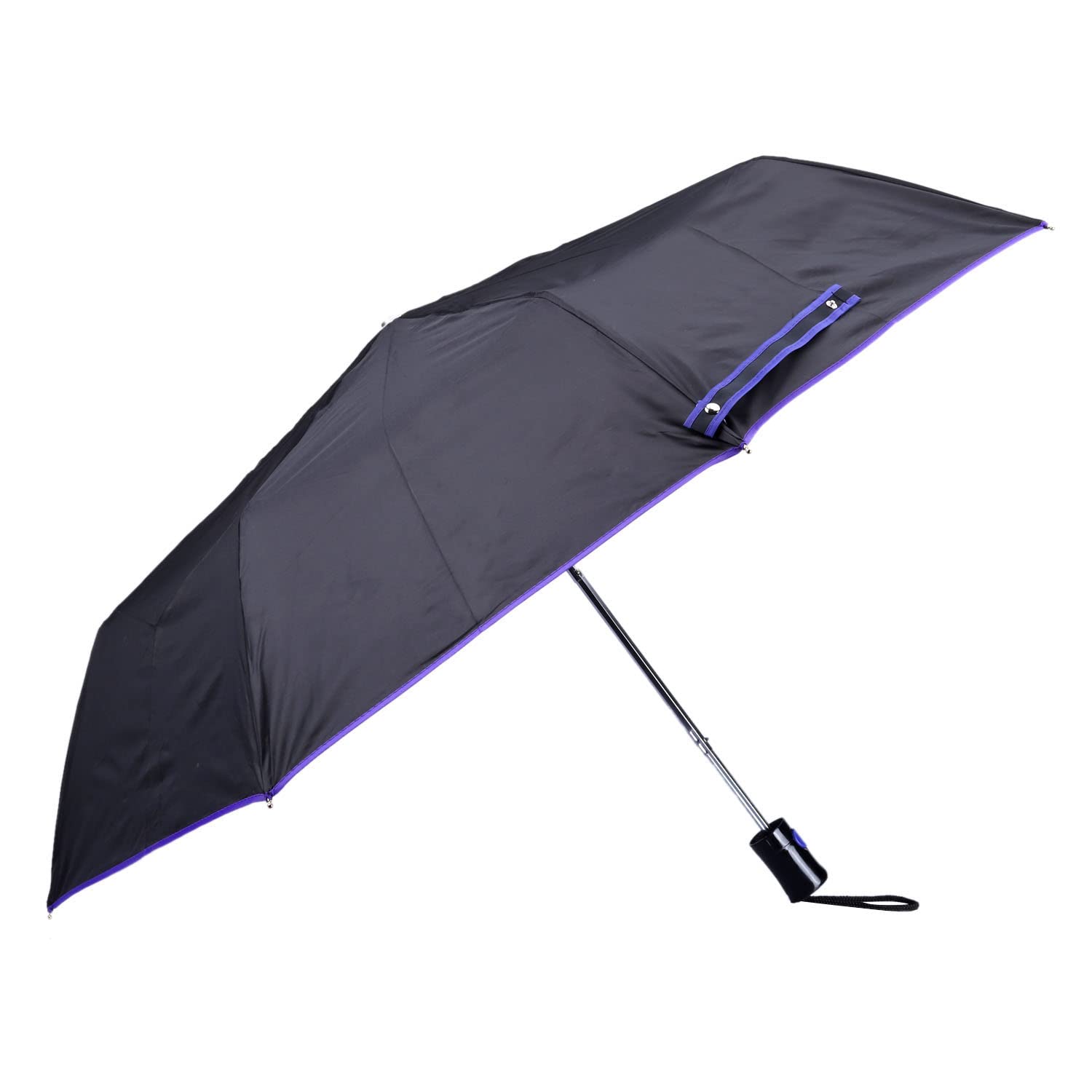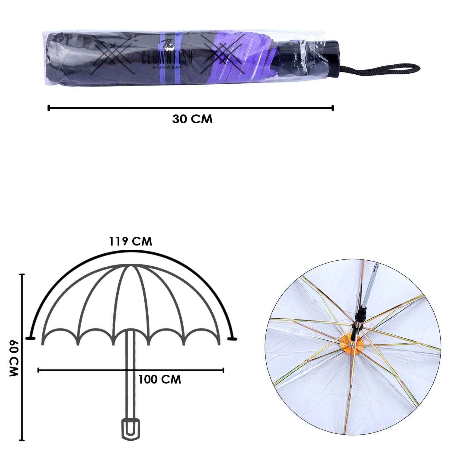 THE CLOWNFISH Umbrella Coloured Piping Series 3 Fold Auto Open Waterproof 190 T Polyester Double Coated Silver Lined Umbrellas For Men and Women (Coloured Piping-Dark Violet)