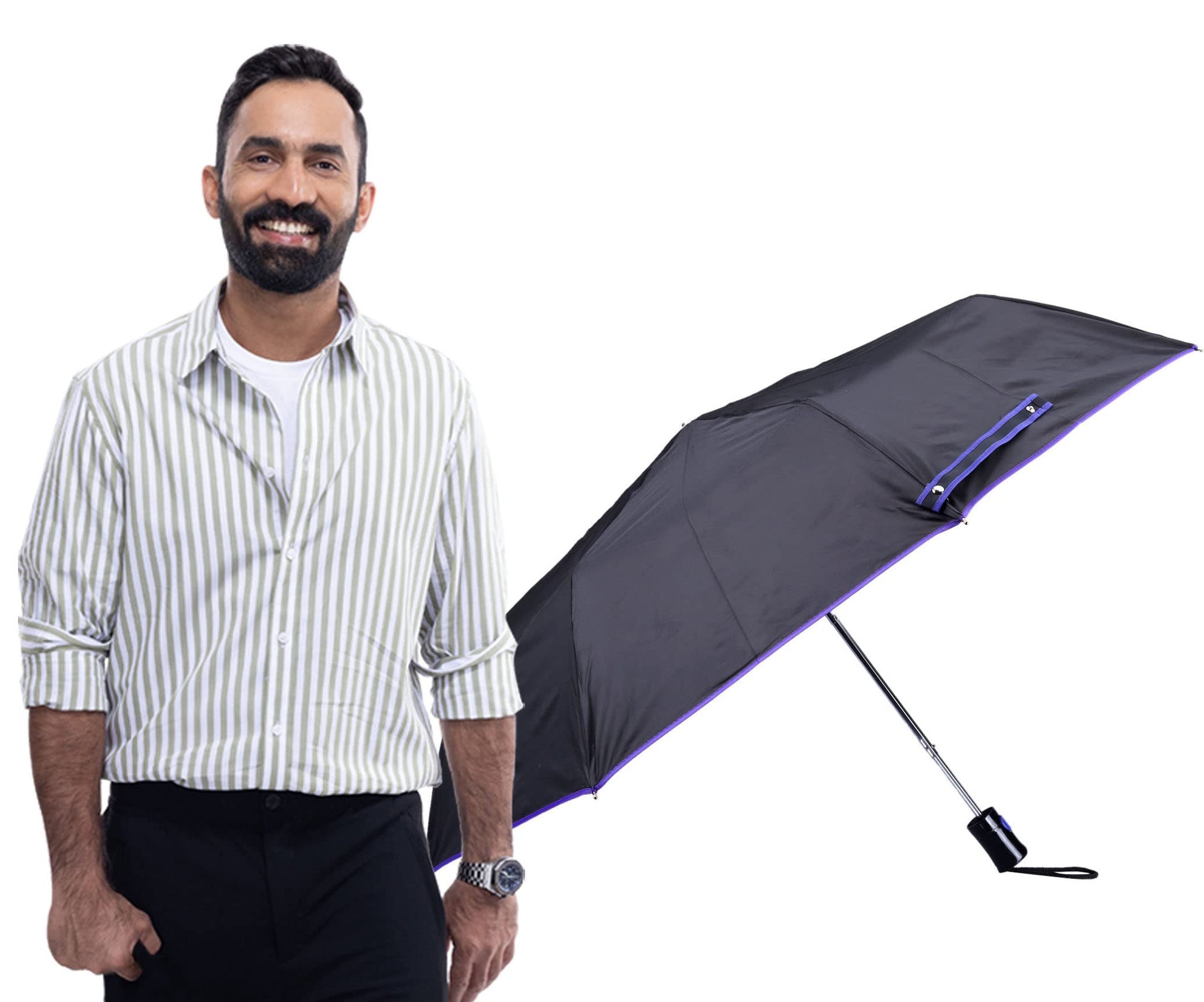 • Stylish Design: Available in a chic dark violet with colorful piping borders, this umbrella is as fashionable as it is functional.