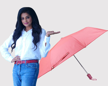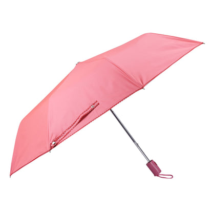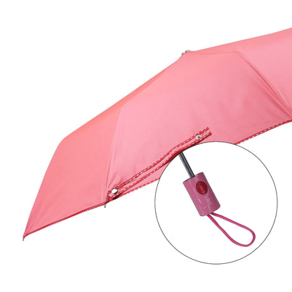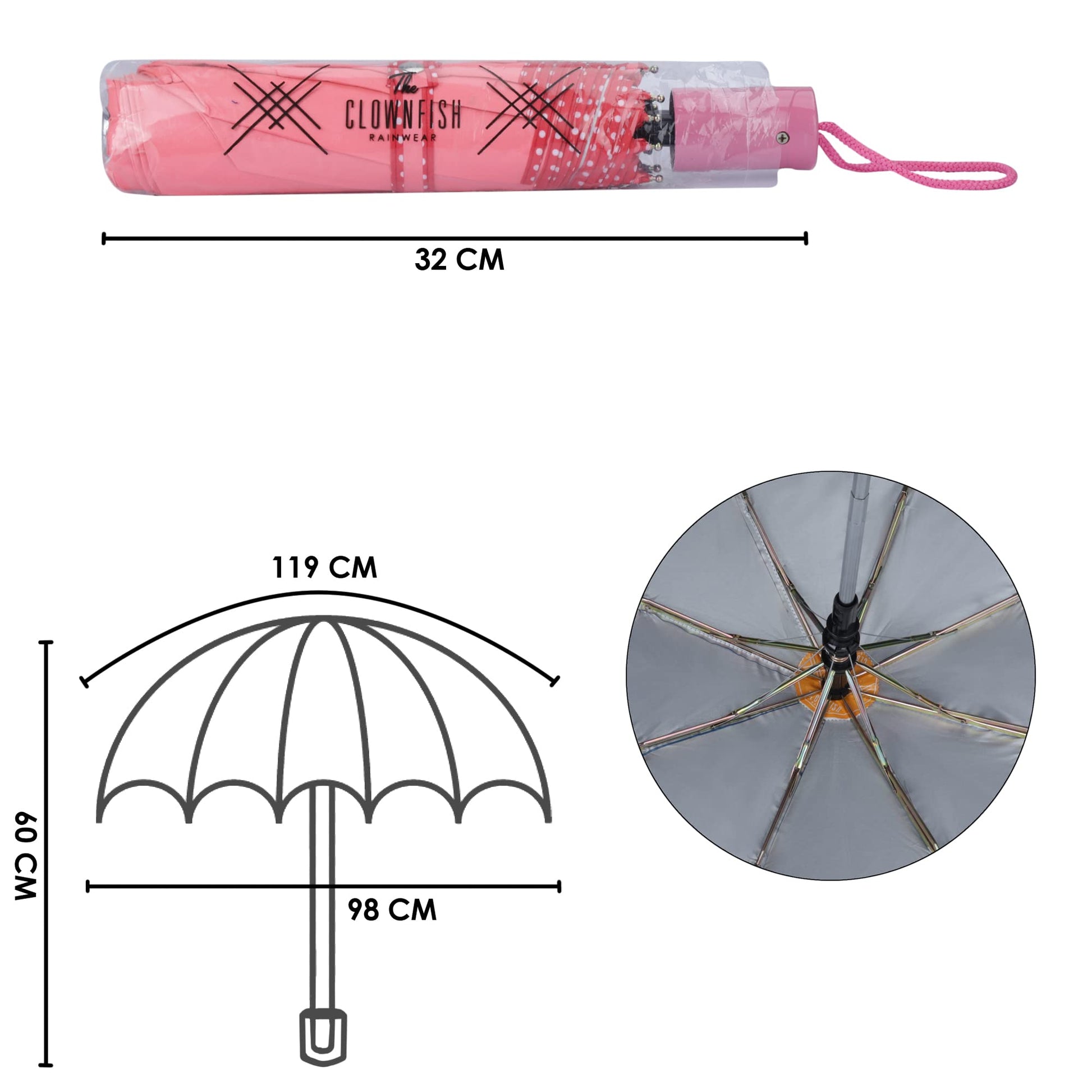 THE CLOWNFISH Umbrella Monochrome Series 3 Fold Auto Open Waterproof Water Repellent 190 T Polyester Double Coated Silver Lined Dotted Border Umbrellas For Men and Women (Dark Peach)