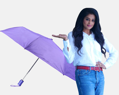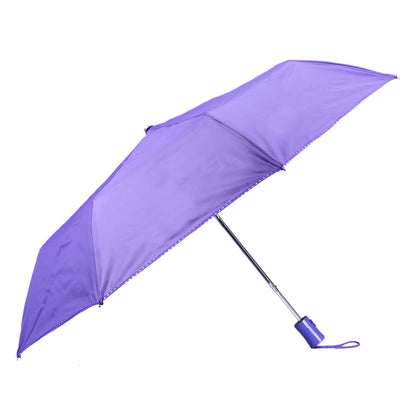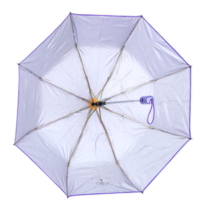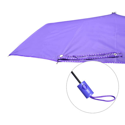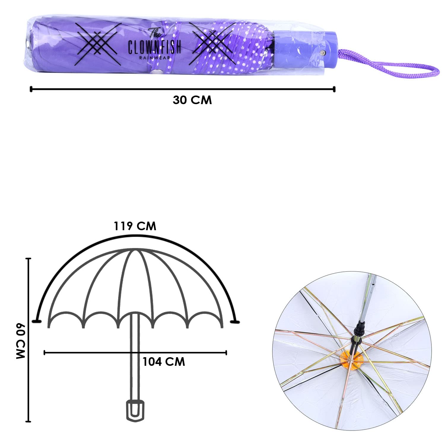 THE CLOWNFISH Umbrella Monochrome Series 3 Fold Auto Open Waterproof Water Repellent 190 T Polyester Double Coated Silver Lined Dotted Border Umbrellas For Men and Women (Purple)