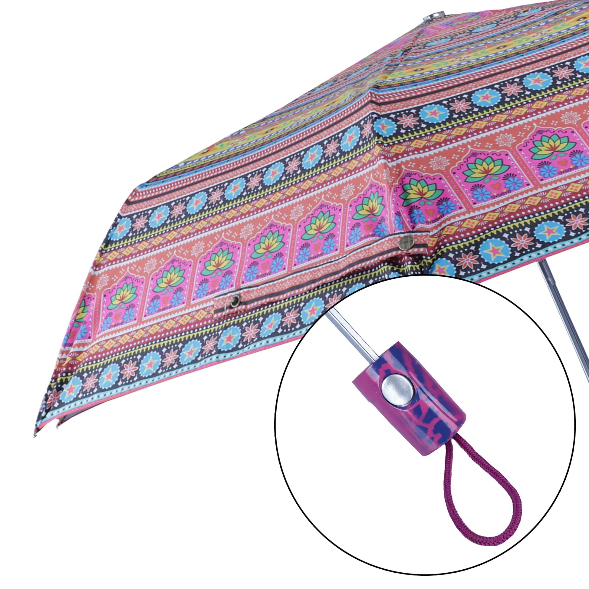 THE CLOWNFISH Umbrella Octagon Series 3 Fold Auto Open Waterproof Water Repellent Nylon Double Coated Silver Lined Umbrellas For Men and Women (Multicolour-Pink Handle)