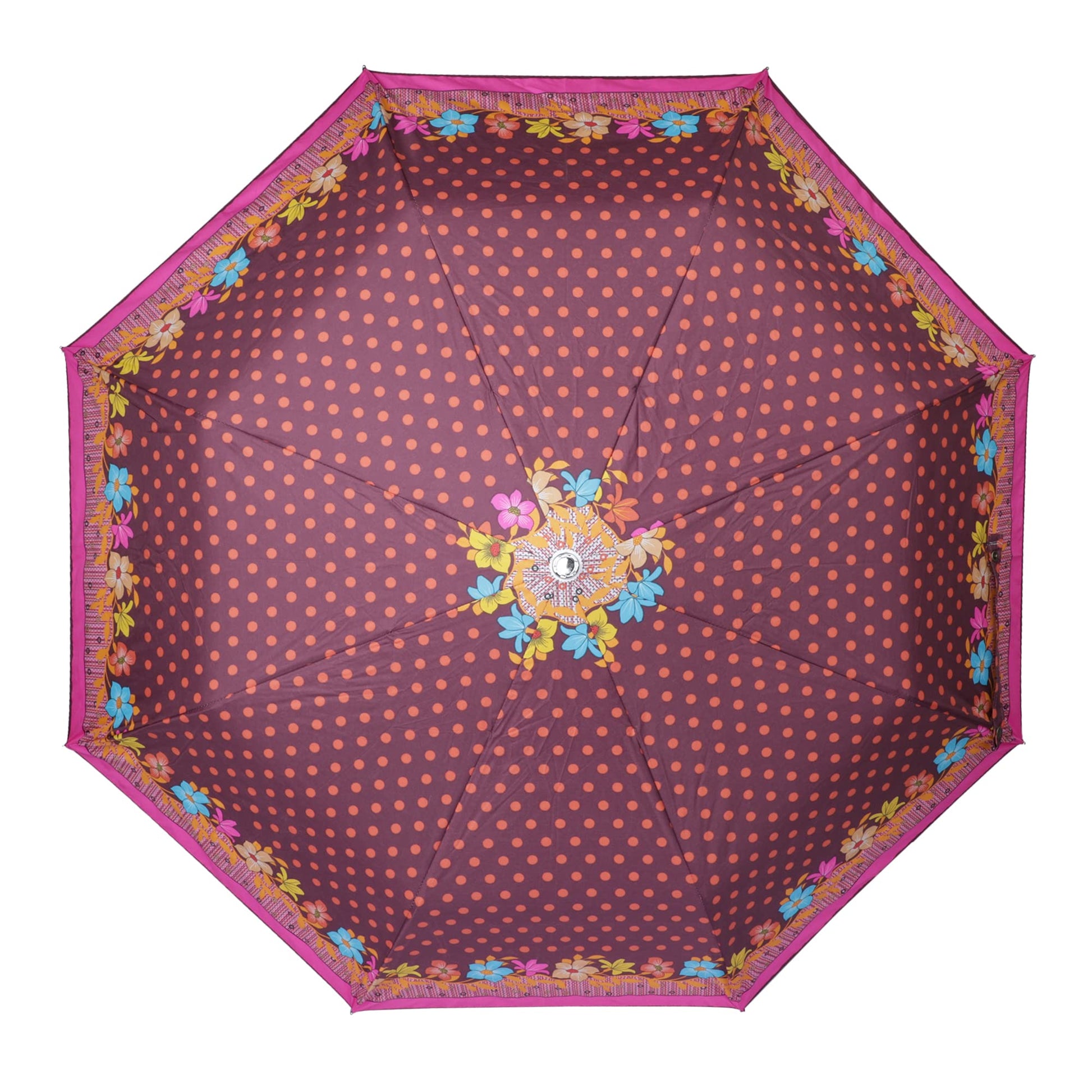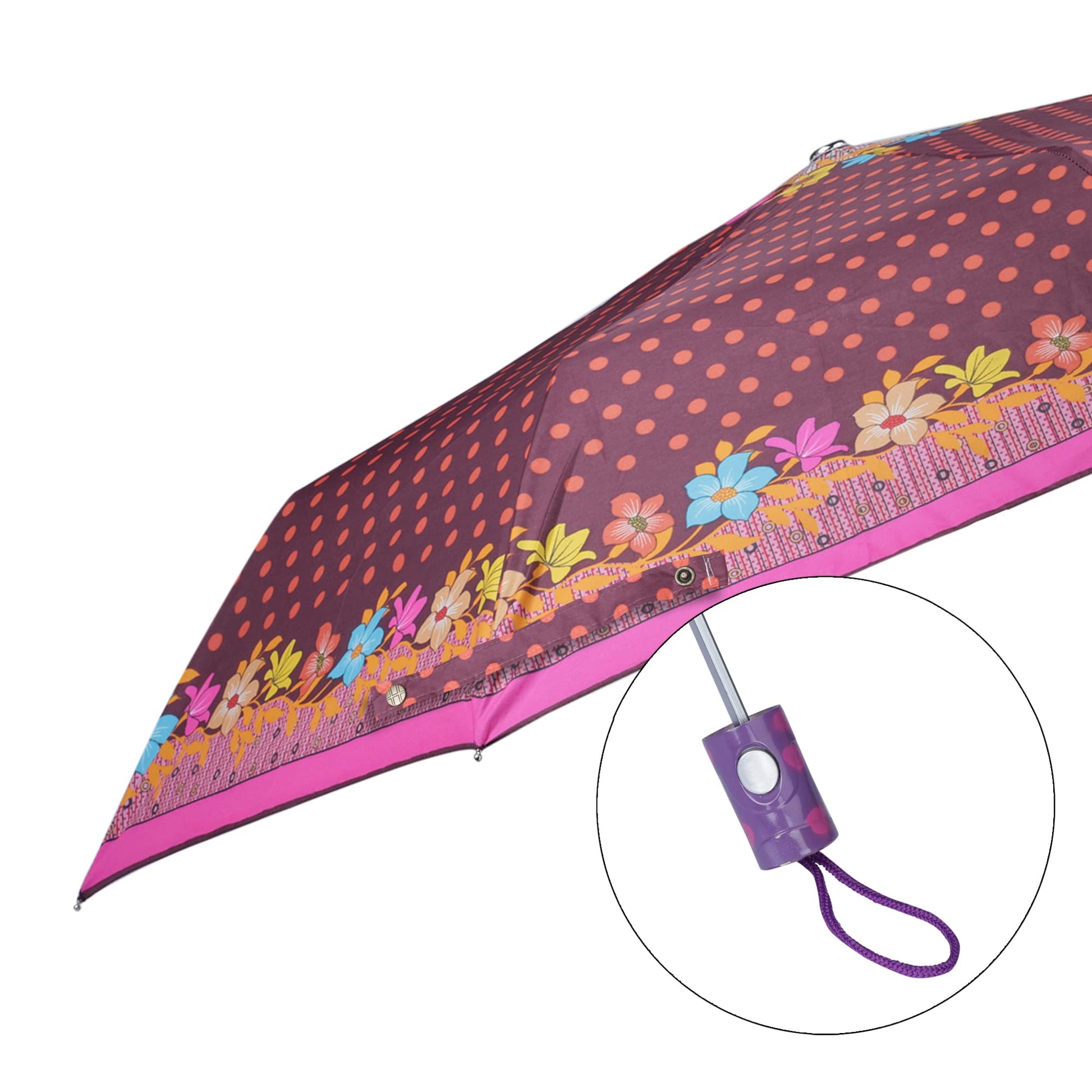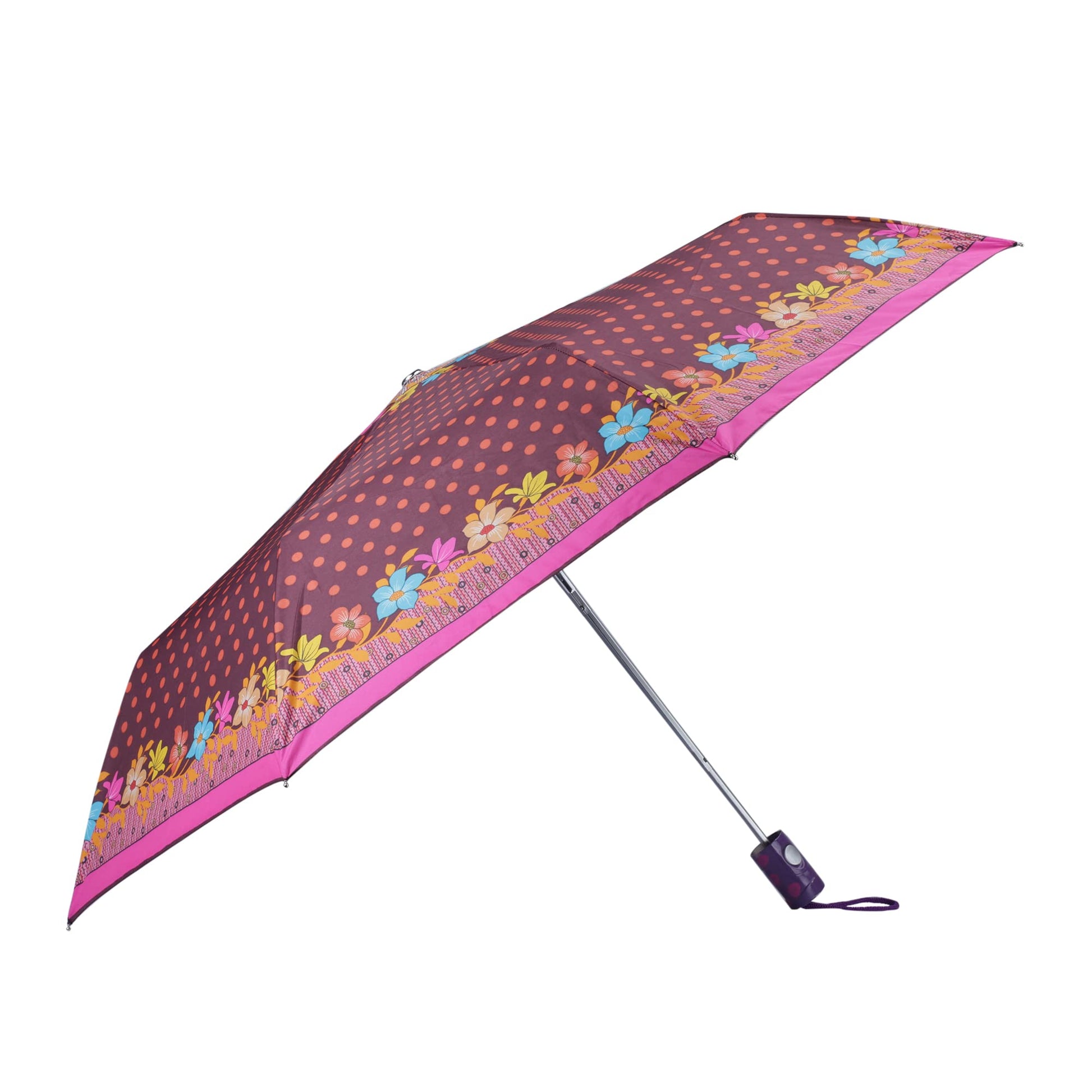 Available in a delightful Chocolate with Dark Pink border, this umbrella adds flair to your rainy day attire, making it a fashionable statement piece.