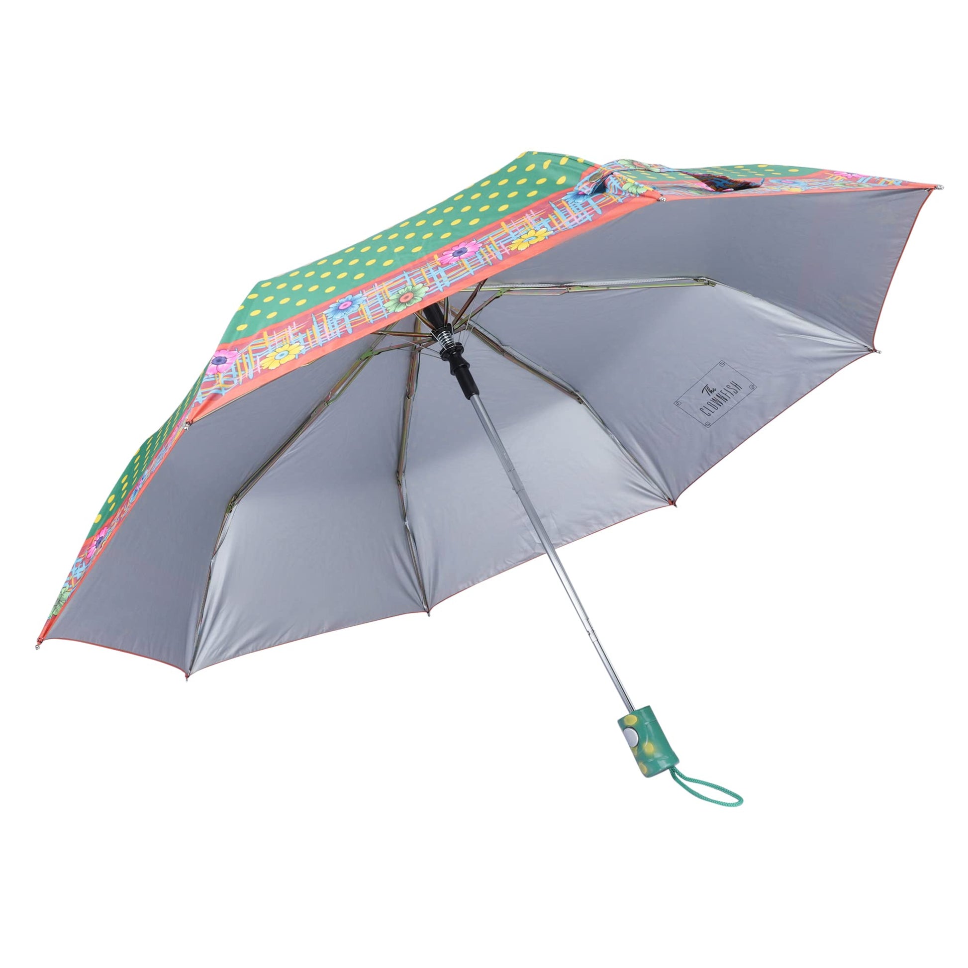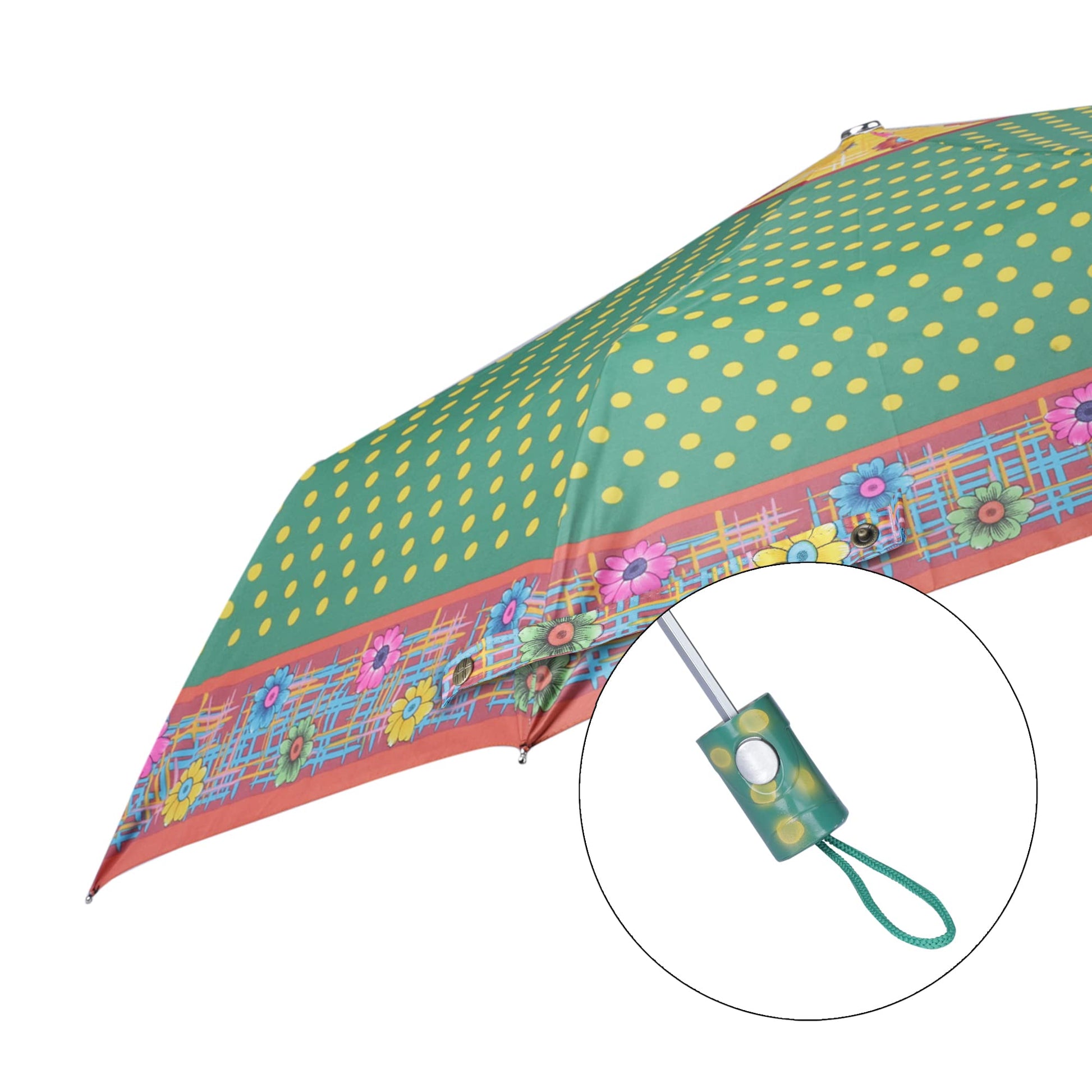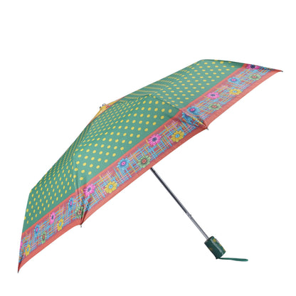 THE CLOWNFISH Umbrella Polka Dot Series 3 Fold Auto Open Waterproof Water Repellent Nylon Double Coated Silver Lined Umbrellas For Men and Women (Green with Peach border)