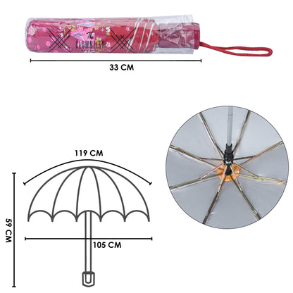 64.5 cm Folding Umbrella Transparent | 8K Fiberglass Ribs | Auto Open & Non-slip Handle | Travel Friendly Windproof | Umbrella for Women, Men & Kids| Floral Print | White