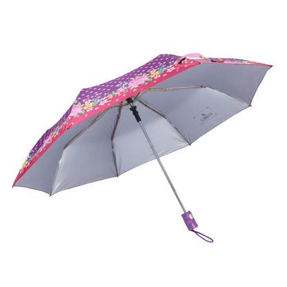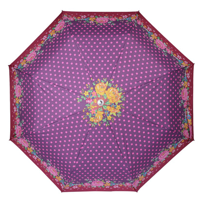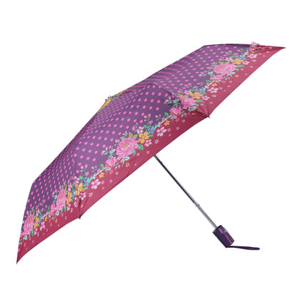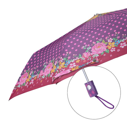THE CLOWNFISH Umbrella Polka Dot Series 3 Fold Auto Open Waterproof Water Repellent Nylon Double Coated Silver Lined Umbrellas For Men and Women (Purple with Maroon border)