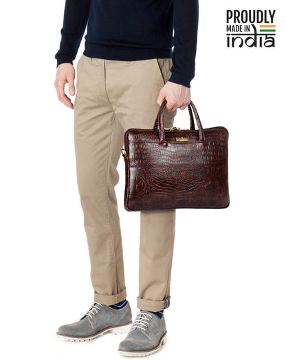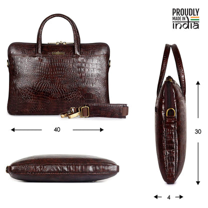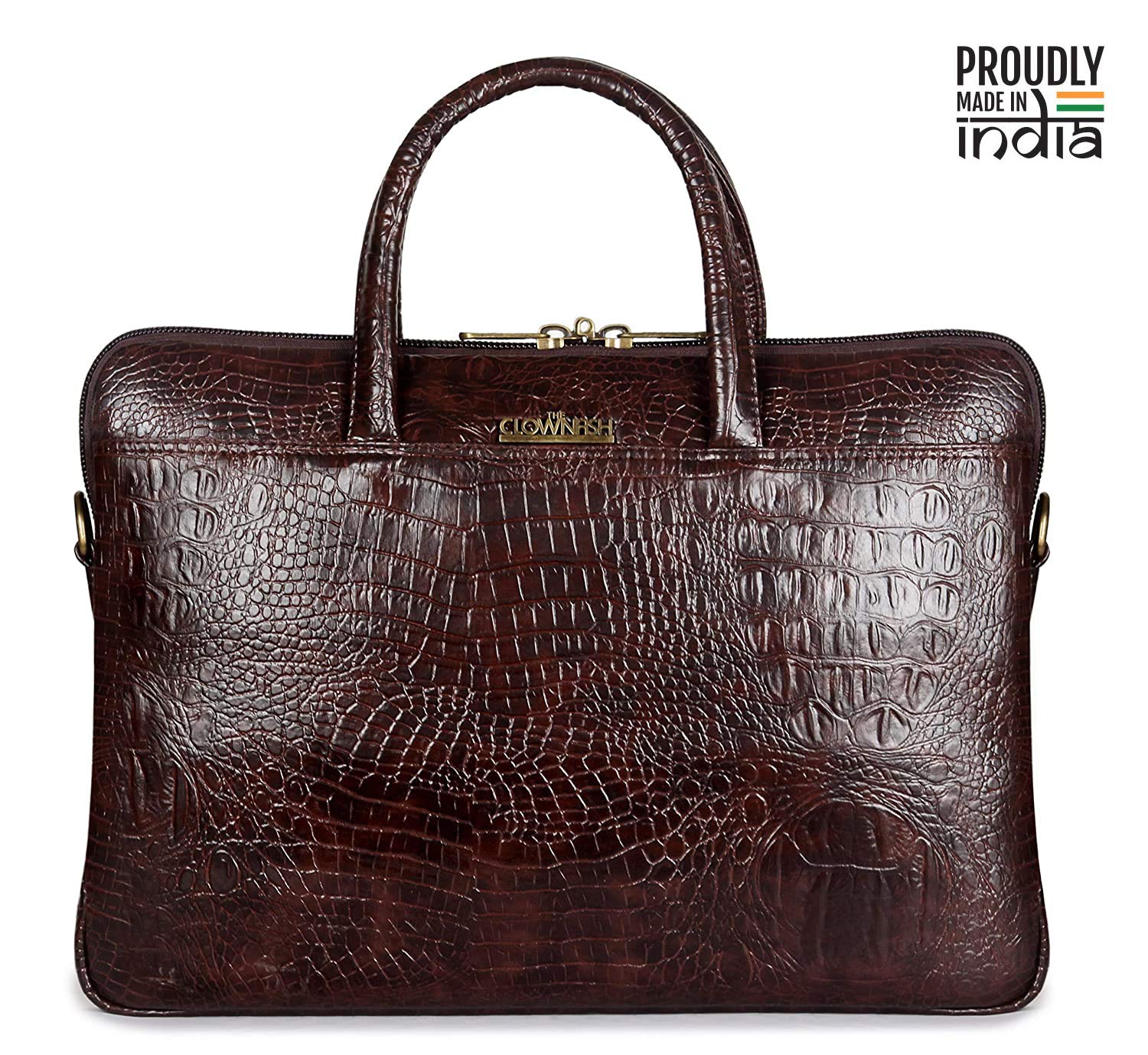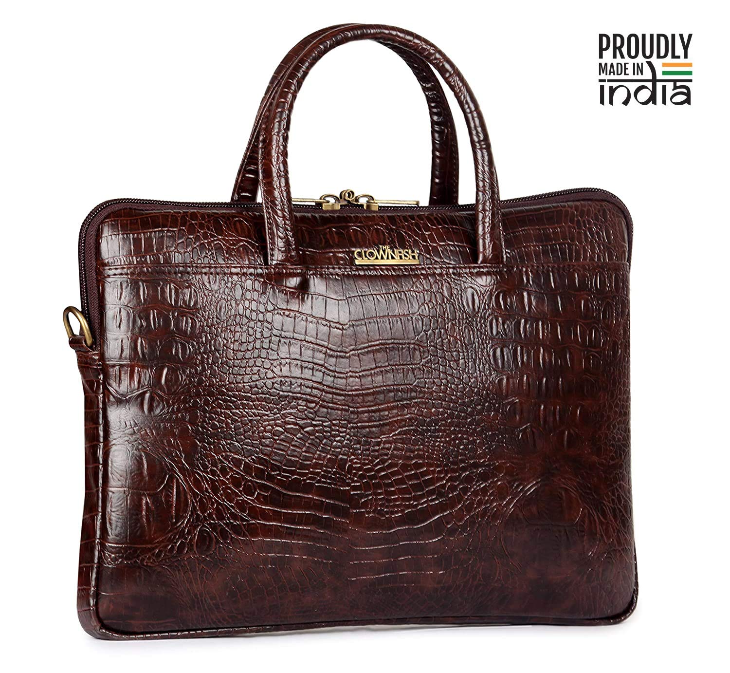 THE CLOWNFISH Unisex-Adult Crocodilan Laptop Briefcase Messenger Bag For 14 Inch Laptops - Rust Brown