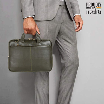 THE CLOWNFISH Unisex-Adult Eros Faux Leather Expandable 15.6 Inch Laptop Tablet Messenger Bag Briefcase (Green)