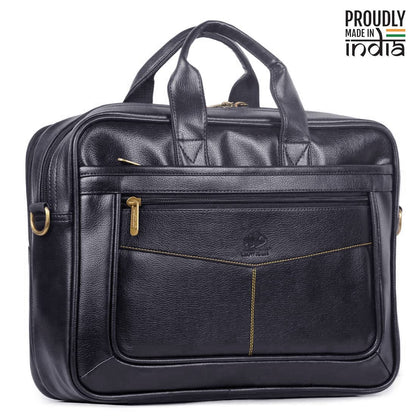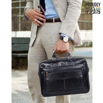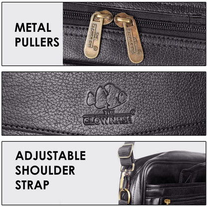 THE CLOWNFISH Unisex-Adult Faux Leather 15.6 Inch Utility Laptop Messenger Bag (Black)