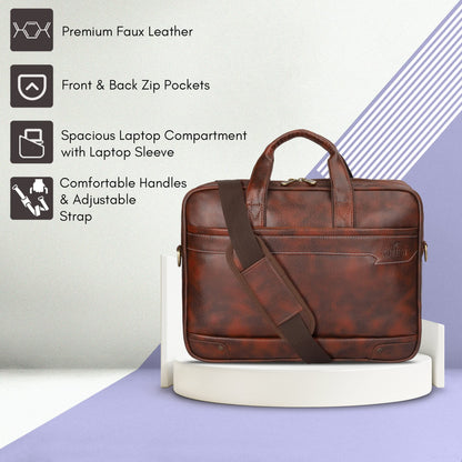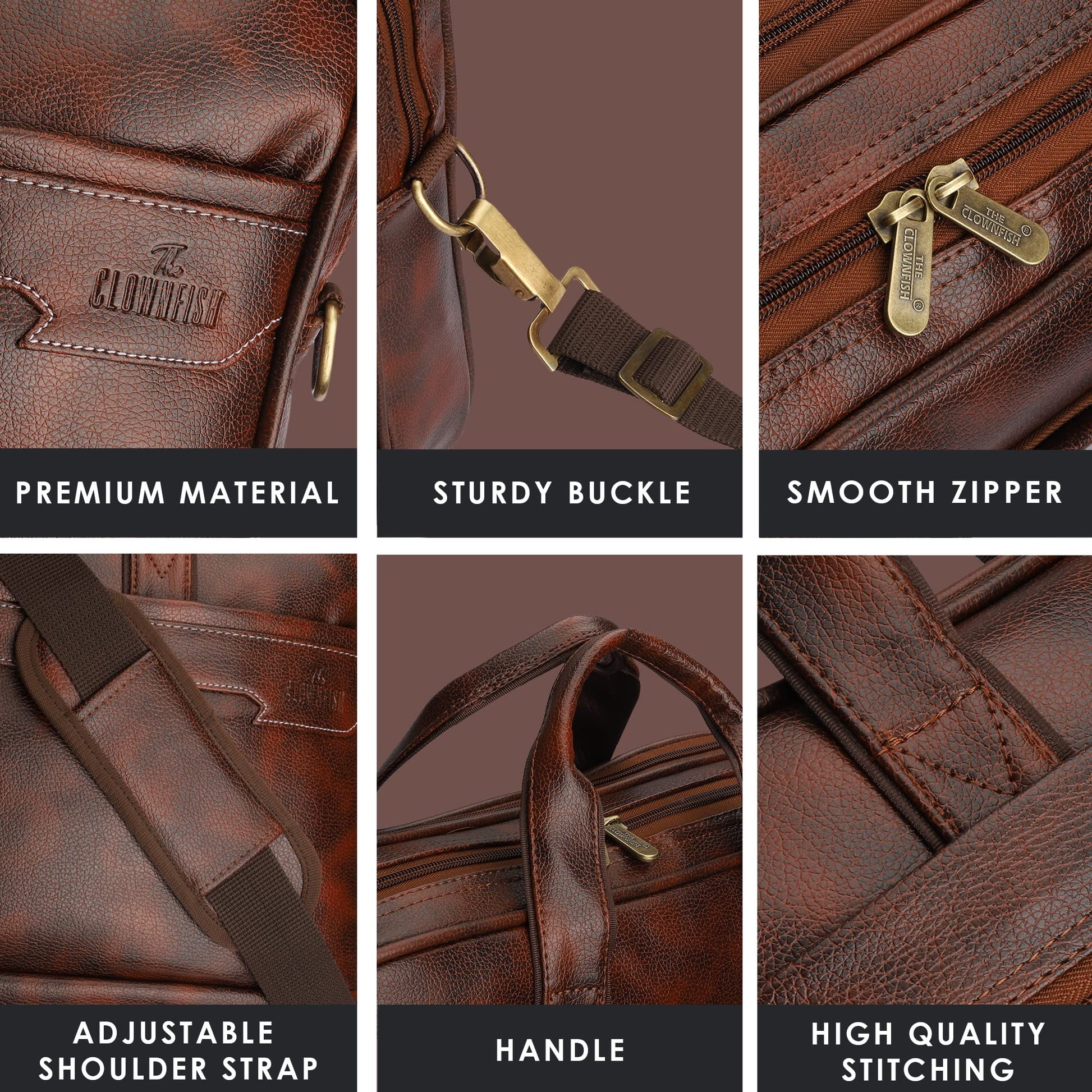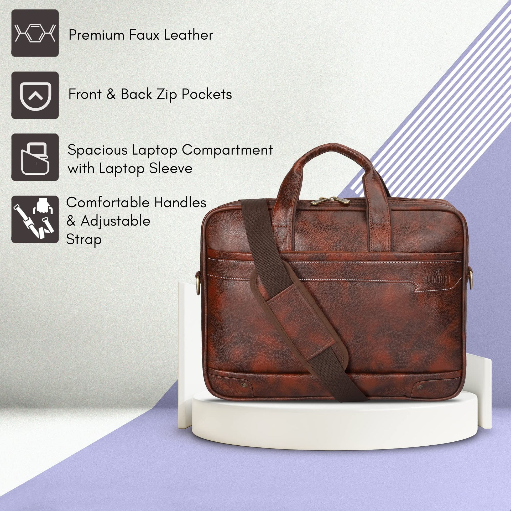 THE CLOWNFISH Unisex-Adult Faux Leather 15.6 Inch Western Laptop Messenger Bag Briefcase Laptop Bags (Tan)