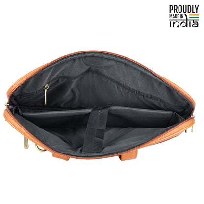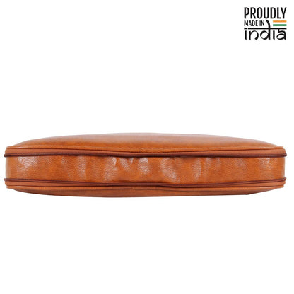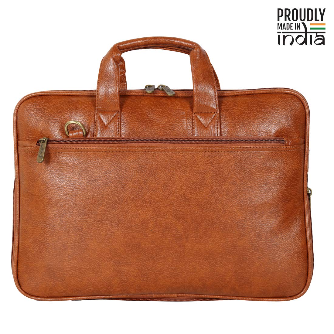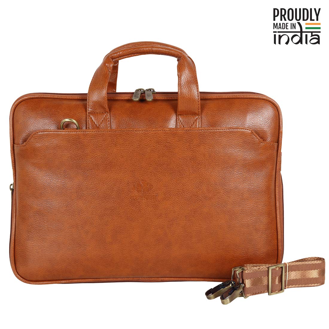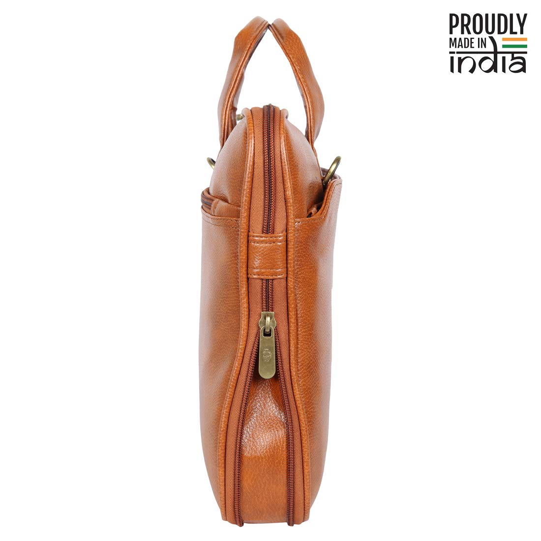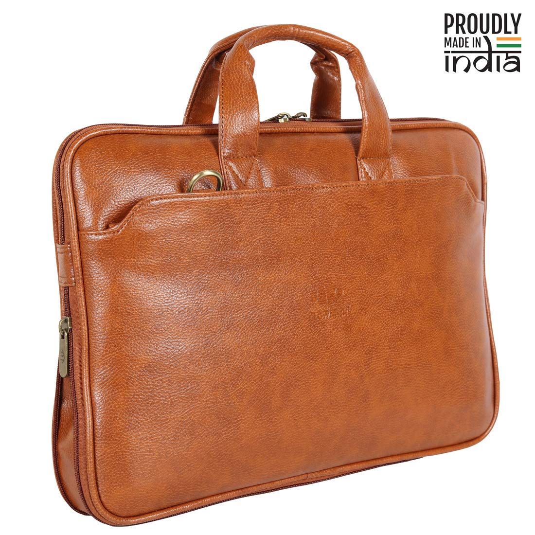 THE CLOWNFISH Unisex-Adult Jason Faux Leather Slim Expandable 15.6 Inch Laptop Messenger Bag Briefcase (Tan)