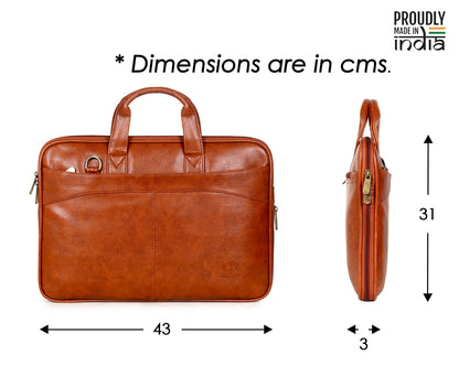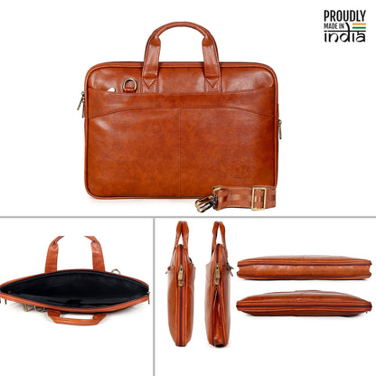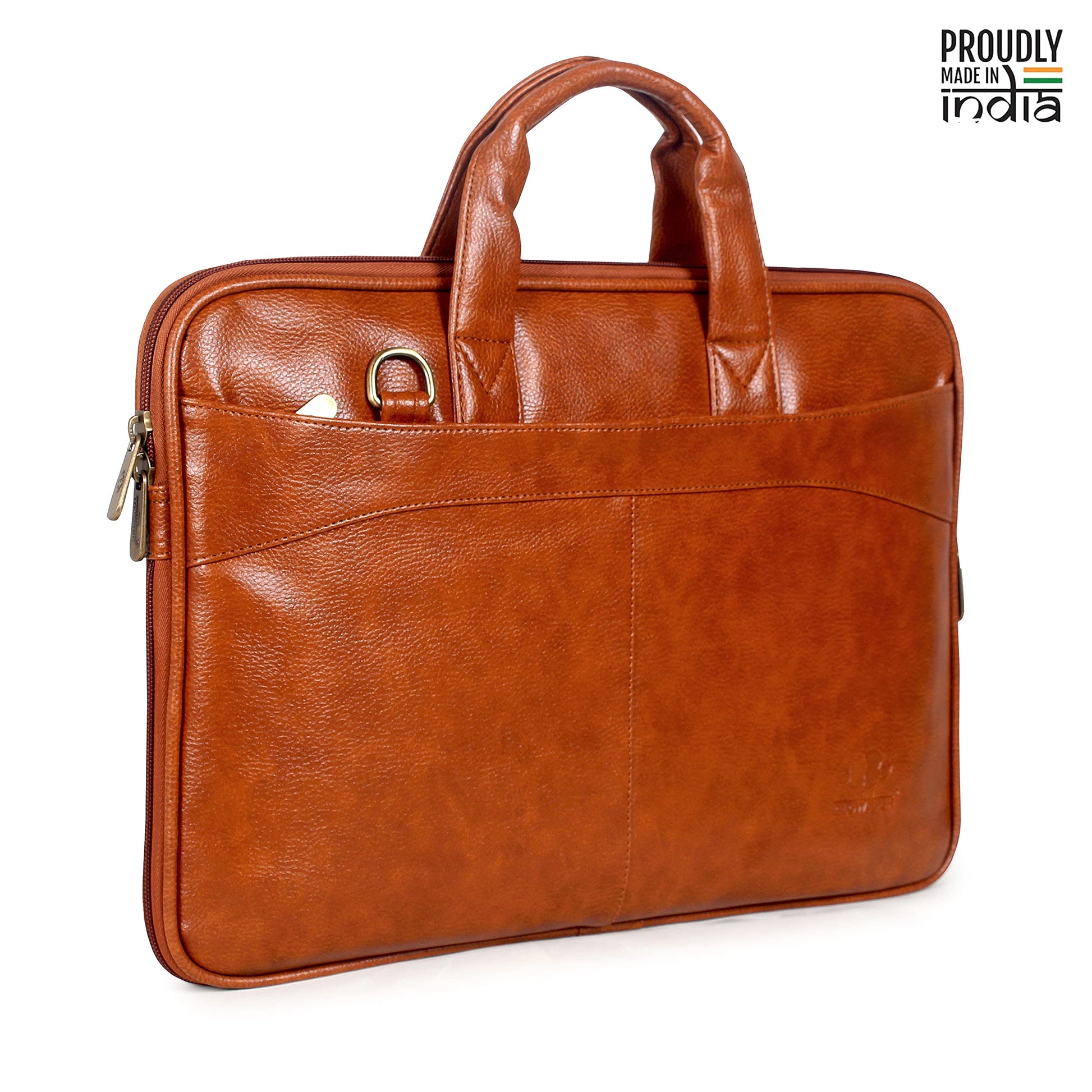 THE CLOWNFISH Unisex Glamour Faux Leather Slim Expandable 15.6 Inch Laptop Messenger Bag Briefcase (Tan)