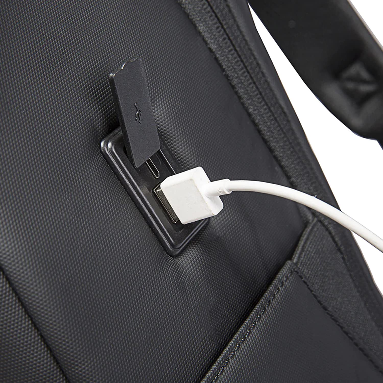 • USB Charging Port: Stay connected on the go with an integrated USB port, allowing you to charge your devices conveniently without opening your backpack.