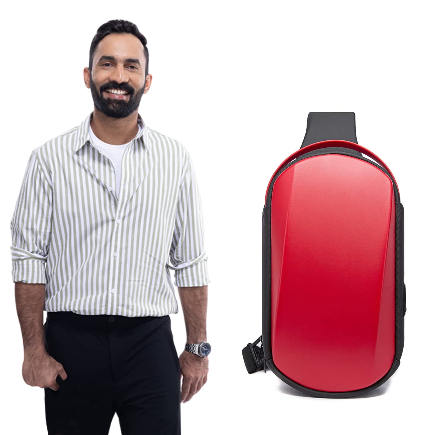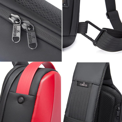 THE CLOWNFISH Water Resistant TPU Unisex Travel Crossbody Sling Bag Chest Pack with USB charging (Red)