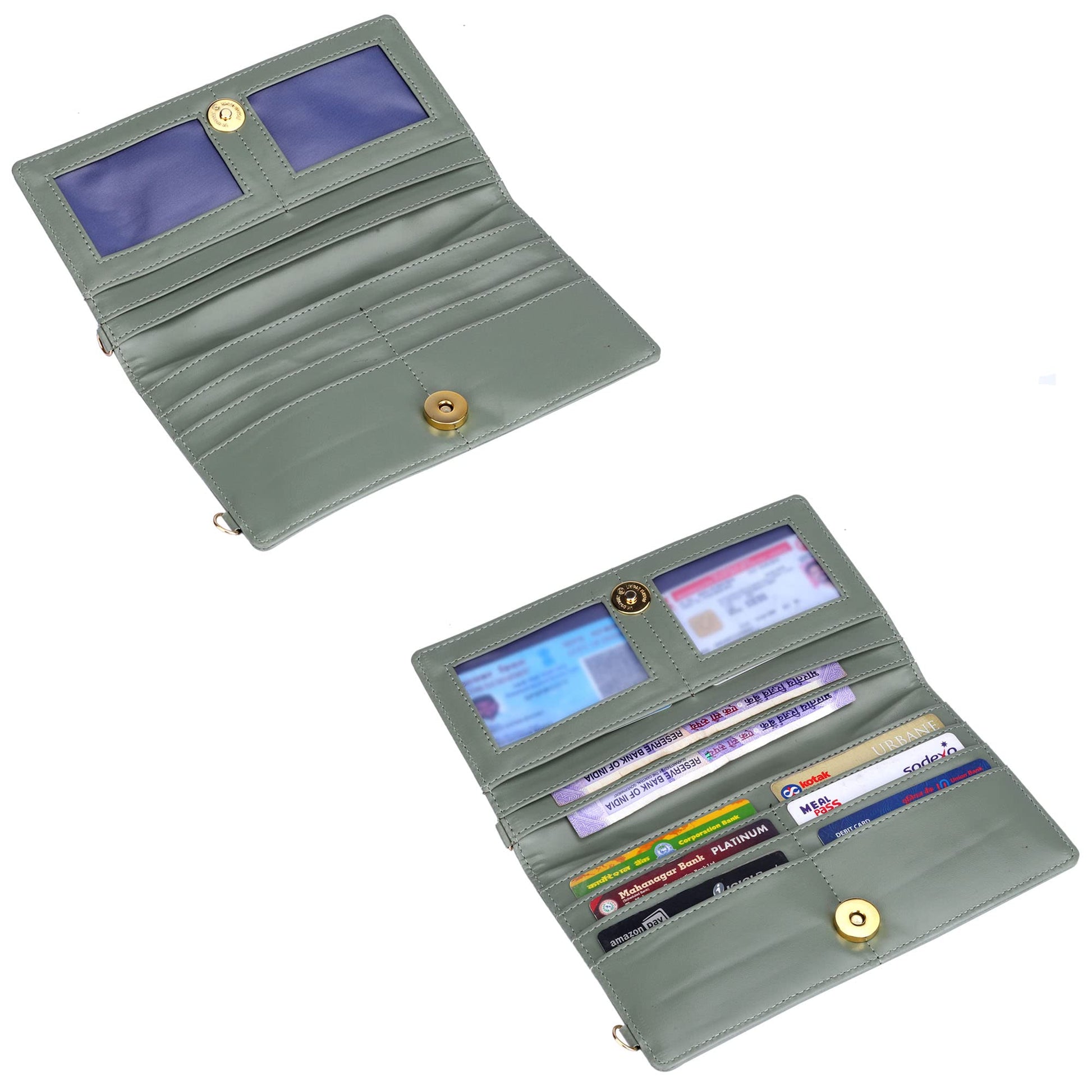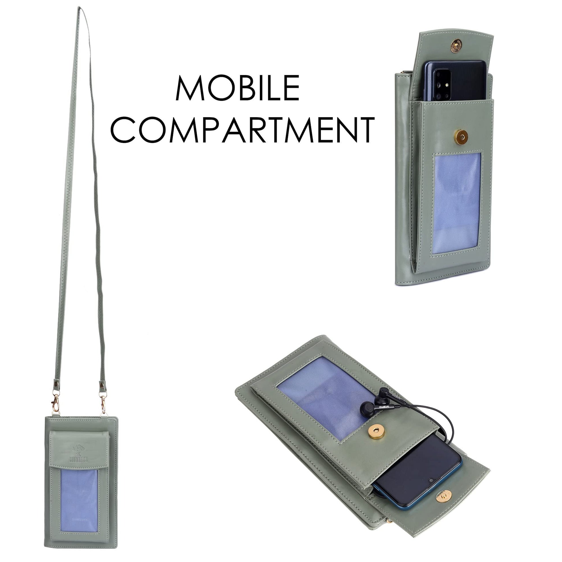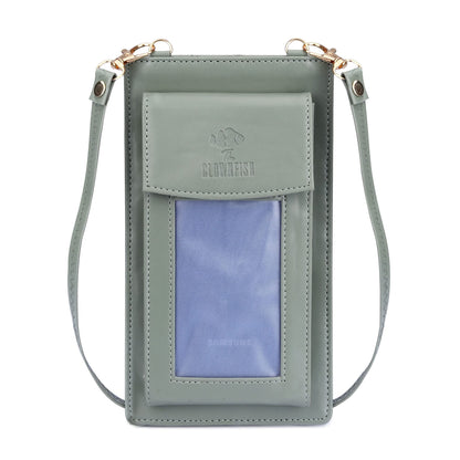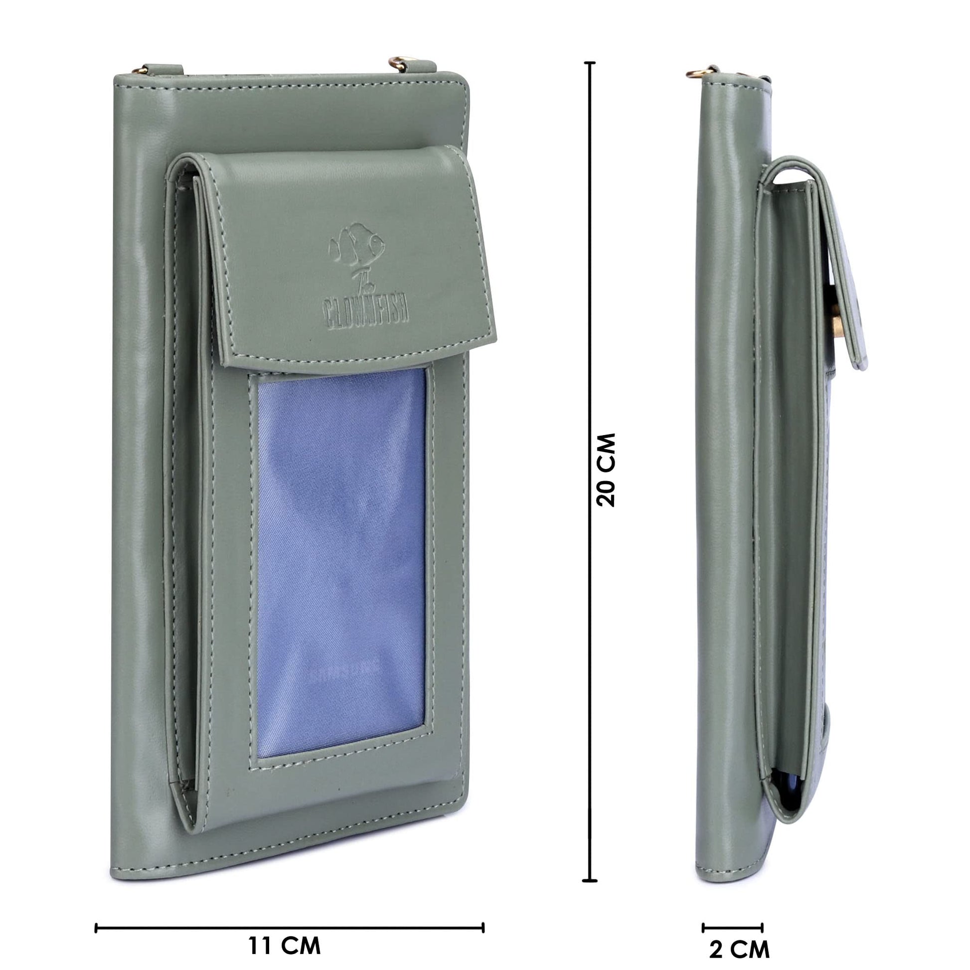 THE CLOWNFISH Winslet Ladies Wallet Womens Sling Bag with Transparent Front Mobile Pocket (Olive Green)