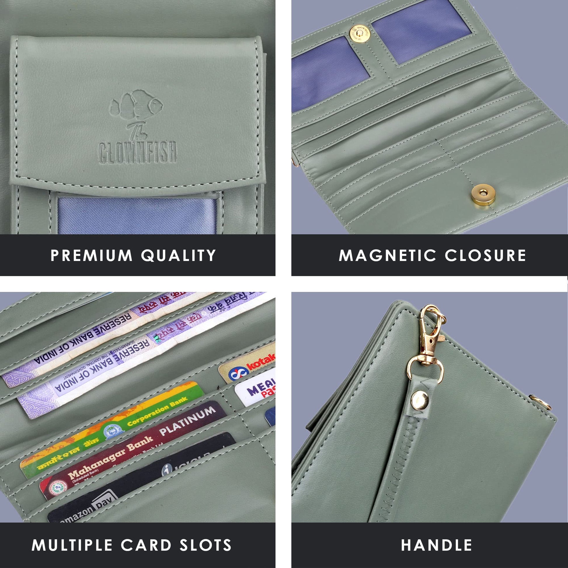 Introducing the THE CLOWNFISH Winslet Ladies Wallet, a stylish and functional wallet crafted from premium vegan leather. This chic accessory not only holds all your essentials but also doubles as a sling bag, making it perfect for everyday use. Its olive green color adds a touch of elegance, while the transparent front mobile pocket ensures easy access to your phone. With multiple compartments for cash, cards, and ID, you’ll find everything organized without sacrificing style.