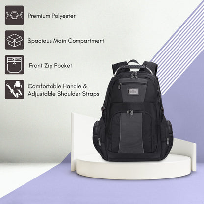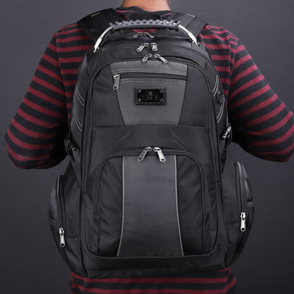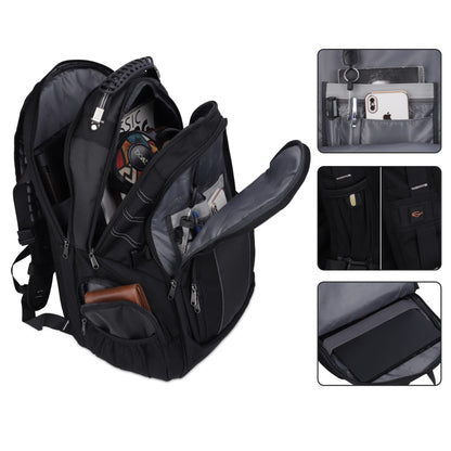 • Trolley Strap: Designed with an insertible pull rod box, this backpack conveniently slides over luggage handles, making mobility hassle-free.