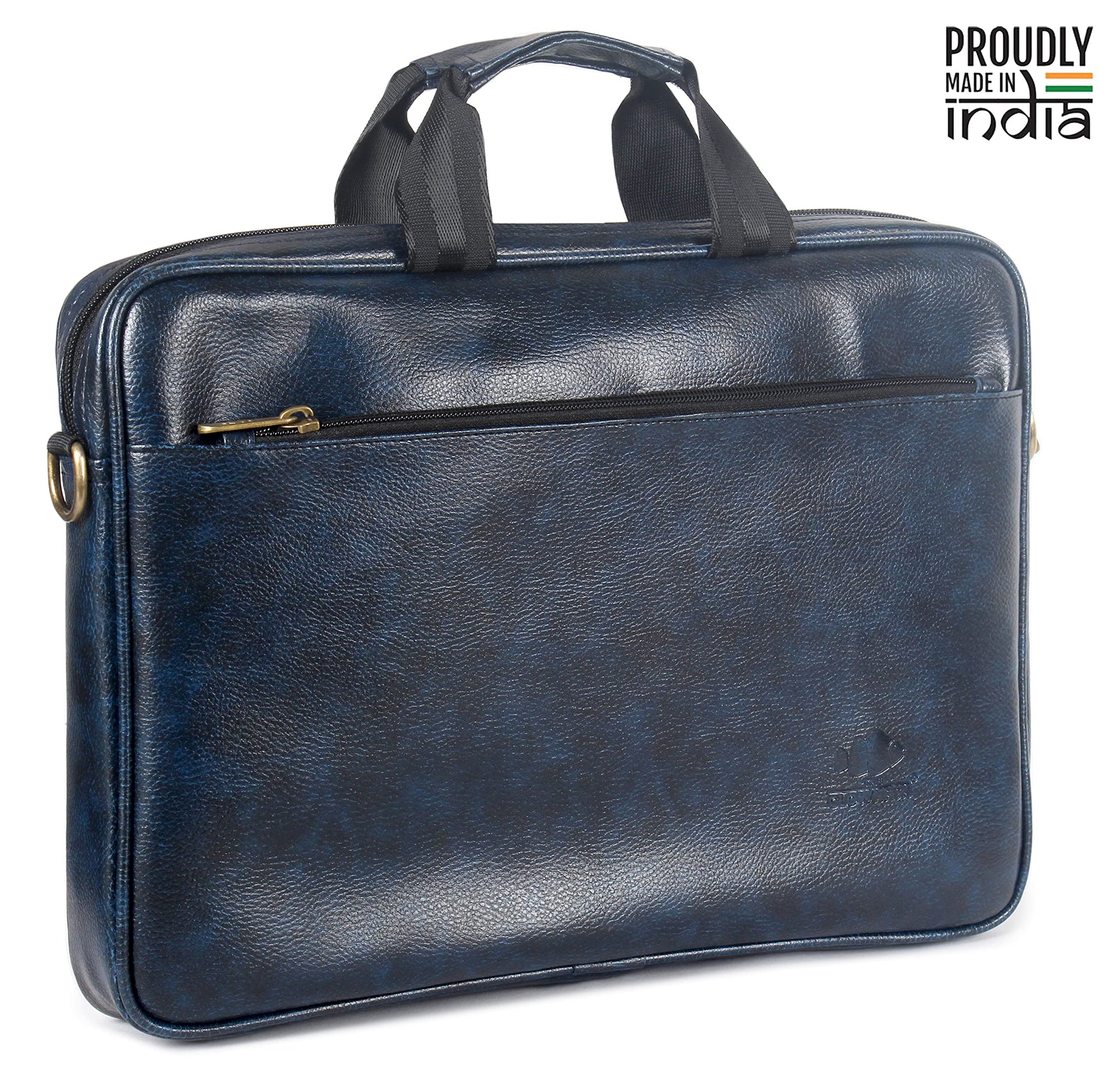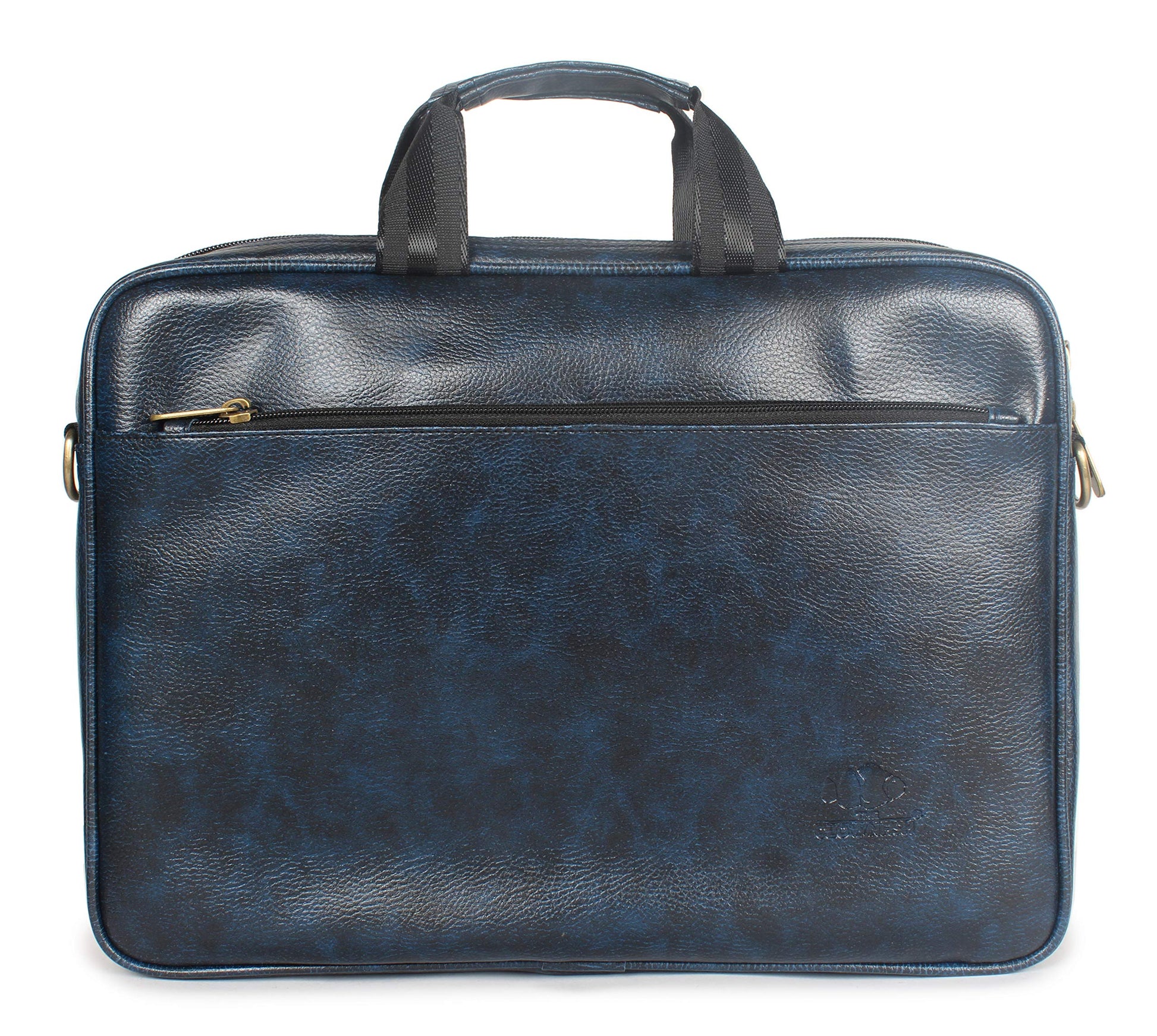 The Zeus Faux Leather 15.6 inch Laptop Messenger Bag Briefcase (Blue)