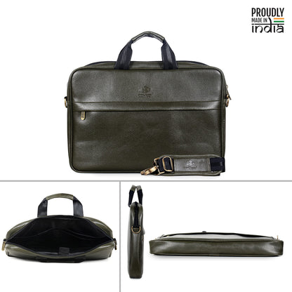 THE CLOWNFISH Zeus Faux Leather 15.6 inch Laptop Messenger Bag Briefcase (Green)