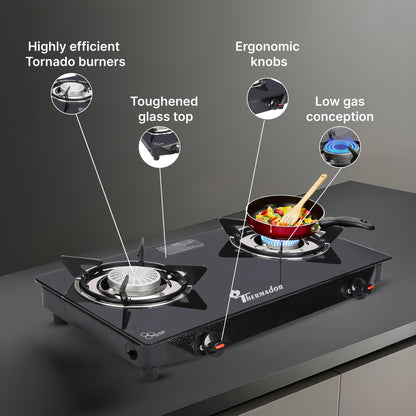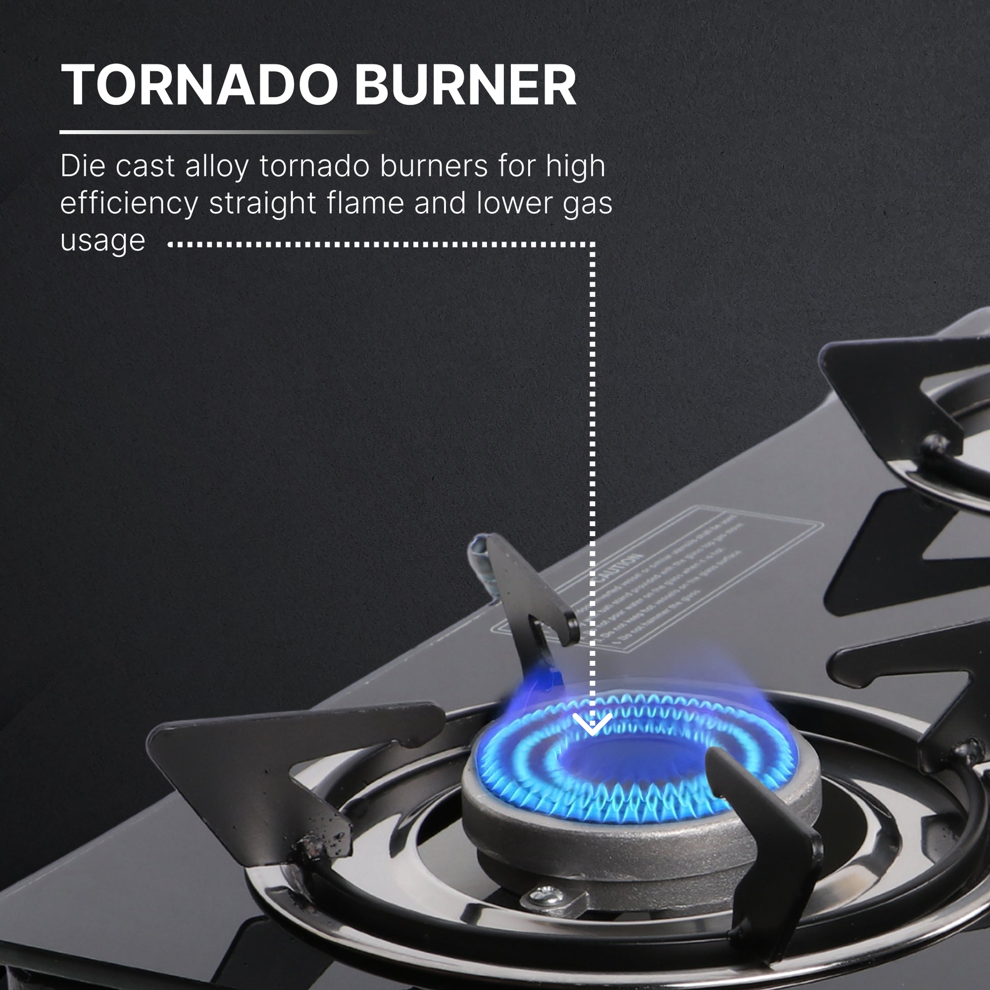 2 Burner Gas Stove: Manual Ignition with 6mm Toughened Glass | Silver